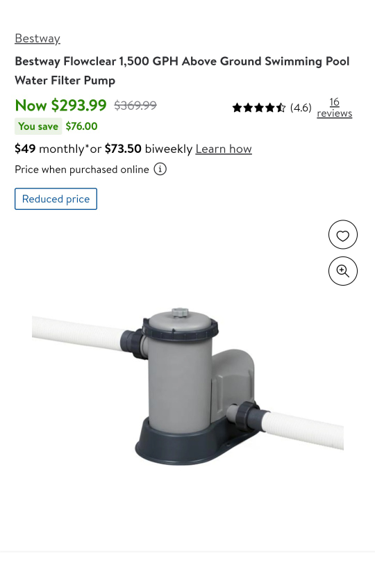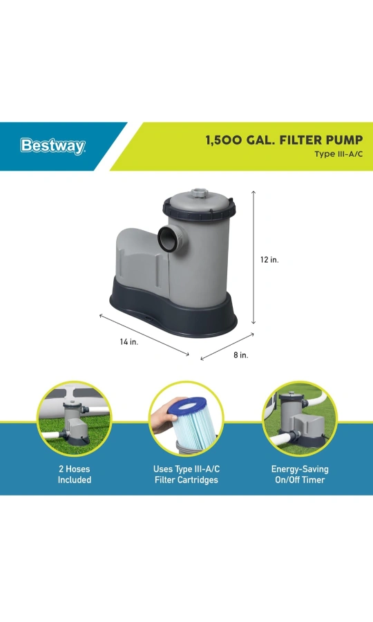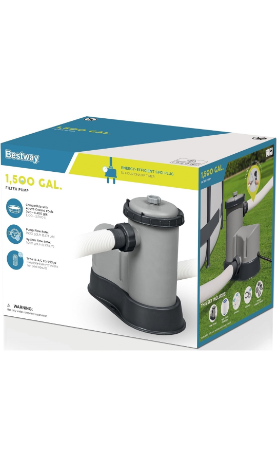 Bestway Flowclear 1,500 GPH Above Ground Swimming Pool Water Filter Pump New sells for about $295 at Walmart or Amazon. Perfectly working, and gives a strong 1500 GPH flow rate. Pool pump only, no accessories. Pickup: Ancaster (Meadowlands area near Tiffany Hills Elementary school) Fcfs, no holds without deposit