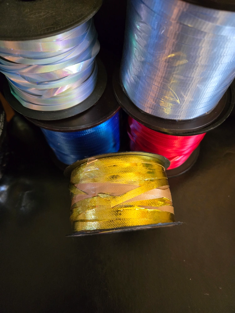 Assortment of ribbons, various colours and patterns. Includes wired and non-wired ribbons. Great for crafting, gift wrapping, and decorating. Some rolls are nearly full; others partially used. Perfect for your next project!