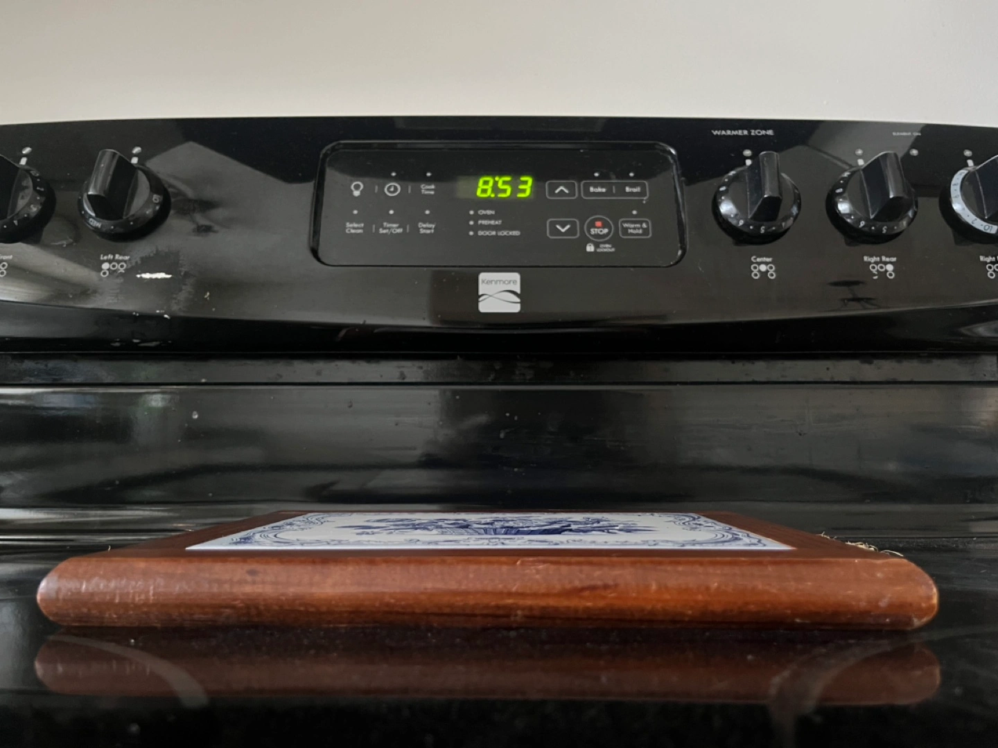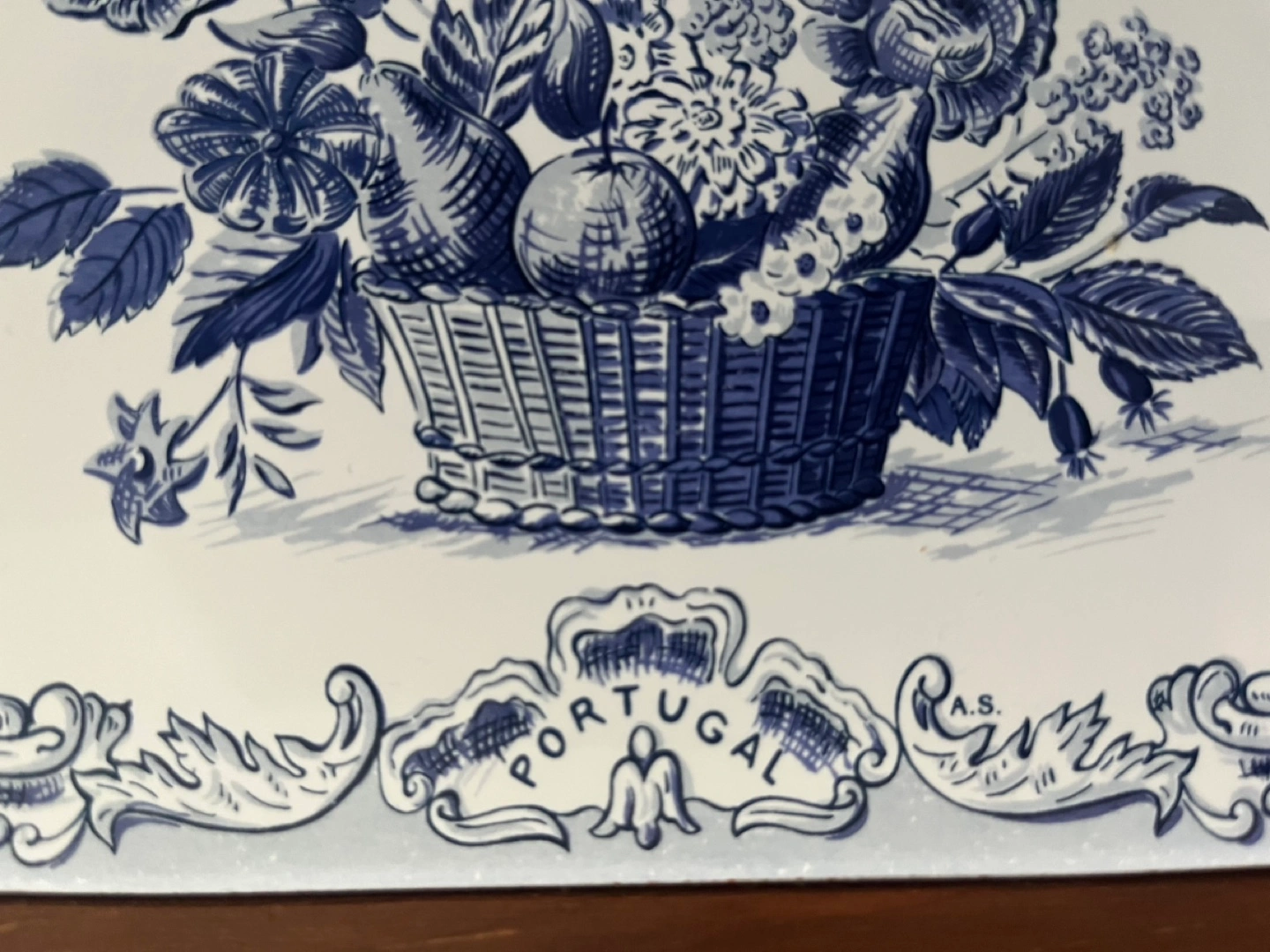 Vintage Portuguese Tile Trivet with Wooden Frame