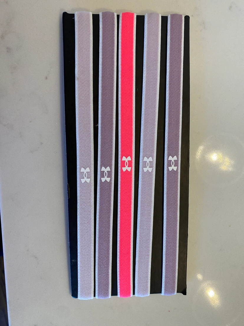 Five new Under Armour headbands for girls. Various colours included. Great for workouts or everyday use.