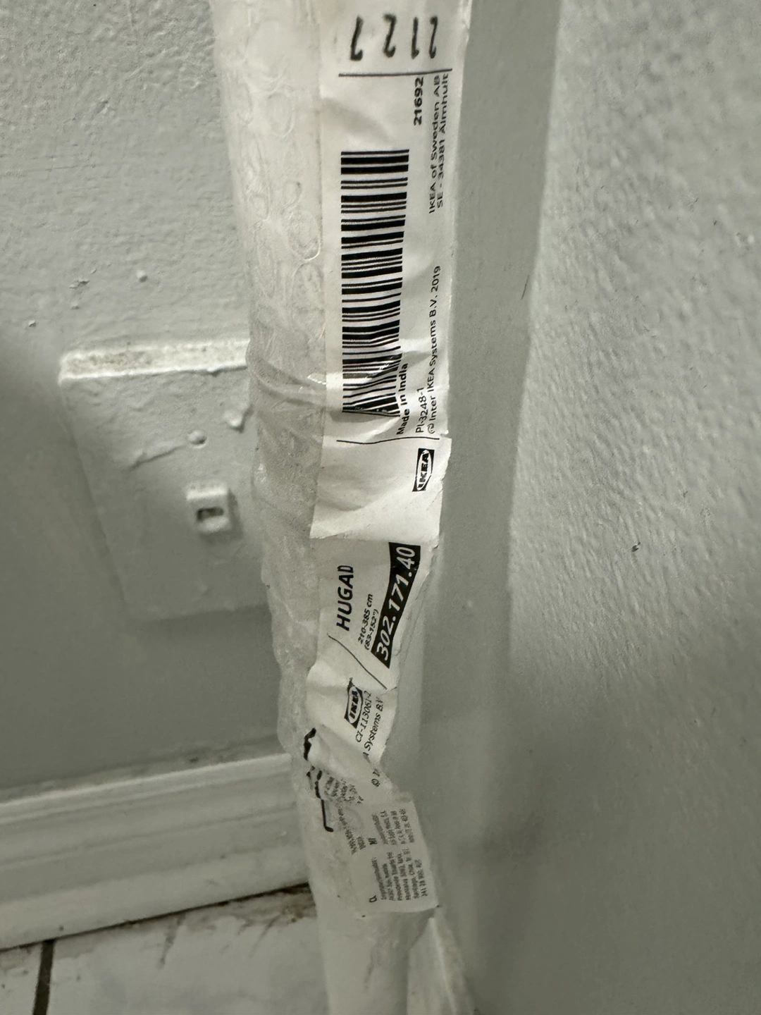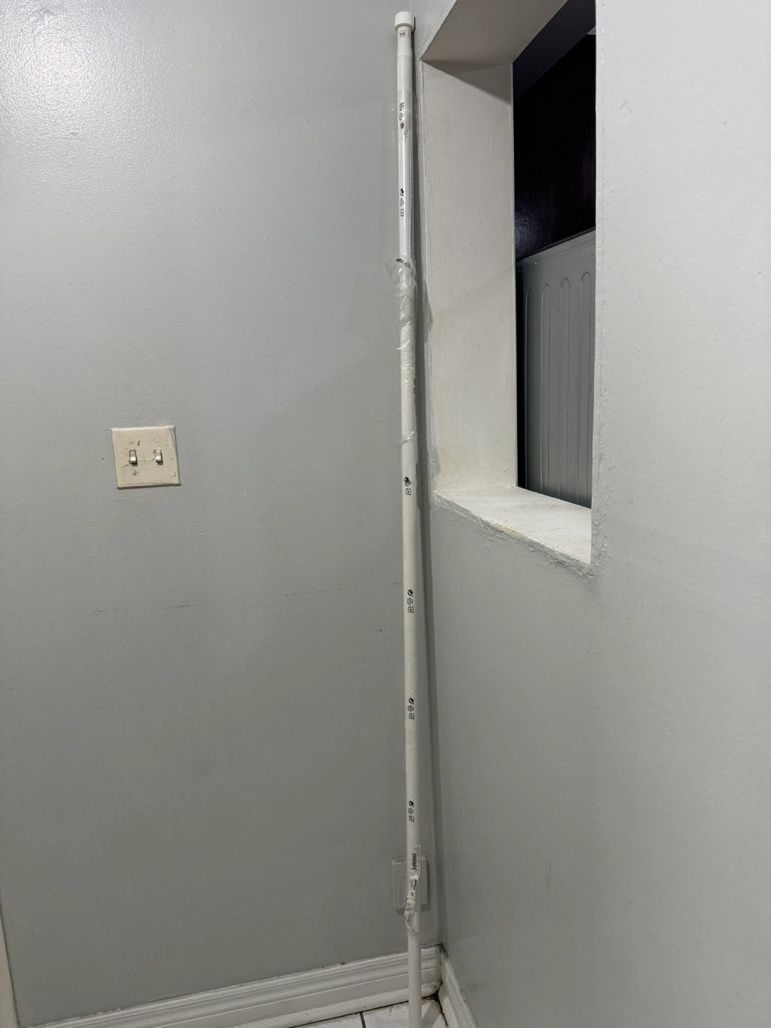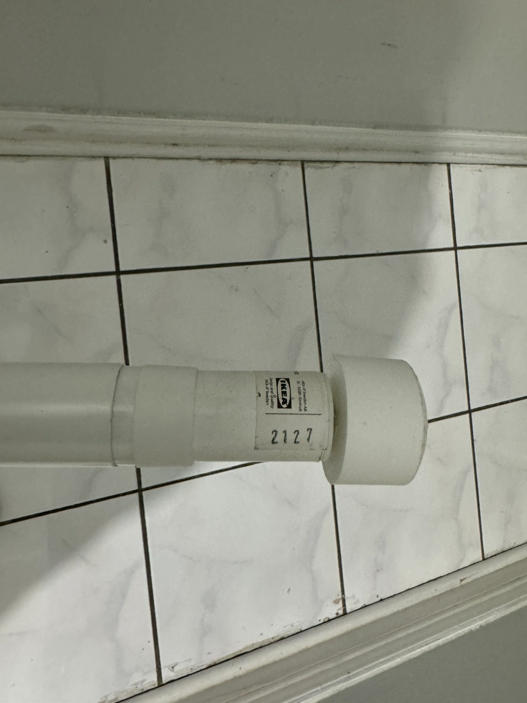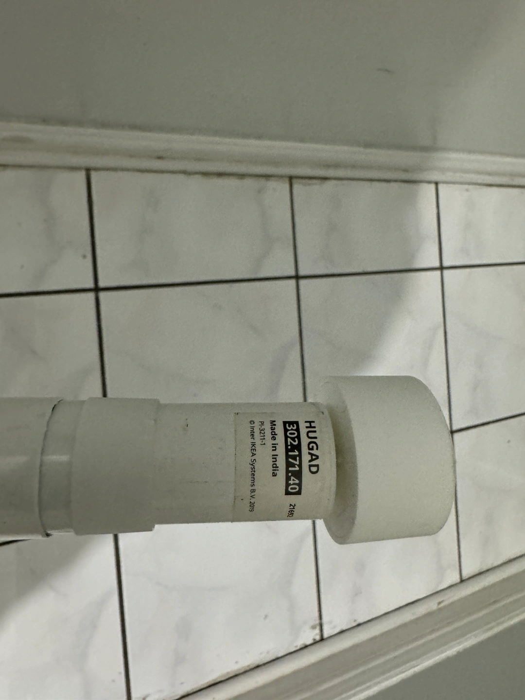 White plastic shower rod. Adjustable length. Never used. Adjustable and extendable rod.