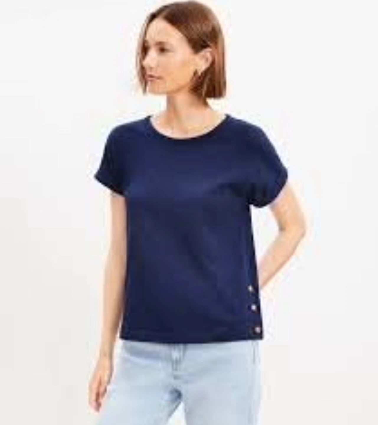 LOFT Women's Petite Side Button Tee - Navy ~ Medium Petite