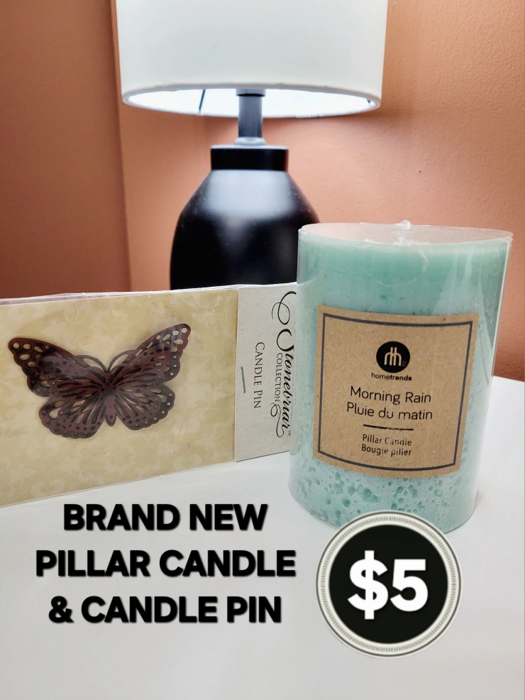 254New Pillar Candle & Pin Asking only $5 (FIRM & FINAL) 💰CASH PREFERRED, PLEASE💰 ⚠️Please only message if you are SERIOUS about buying AND you know when you'd like to pick up.⚠️ 🚙Located in North Oshawa BEATRICE & RITSON area.🚙 ⏰️No holds longer than 2 days.⏰️ ‼️CROSS POSTED‼️