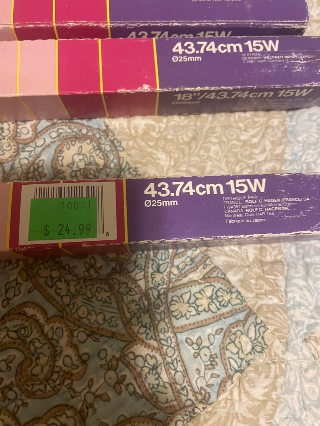 Three new, unopened LIFE-GLO fluorescent tubes. 15W, 43.74cm length. Designed for aquariums. Original packaging.