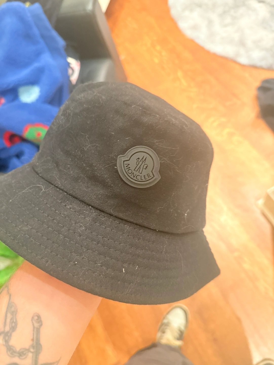 Elevate your style with this authentic Moncler bucket hat in classic black. Crafted with high-quality materials, it has been worn only twice and is in excellent, near-new condition. The iconic Moncler logo patch on the front adds a sleek, signature touch. Whether you’re dressing up a streetwear look or adding a luxe element to your everyday wardrobe, this versatile bucket hat is a must-have accessory. Key Features: • Brand: Moncler • Color: Black • Condition: Gently used (only worn twice), excellent overall condition • Material: Soft yet durable fabric Why You’ll Love It: • Perfect blend of comfort and high-end fashion • Iconic Moncler logo patch adds a statement detail • Versatile design suitable for casual or dressier outfits • Lightweight and packable for easy travel Care & Maintenance: • Spot clean or hand wash recommended • Store in a cool, dry place to maintain shape Don’t miss out on this opportunity to own a nearly new Moncler bucket hat at a fraction of the retail price. Feel free to message with any questions or for additional photos. Happy shopping!