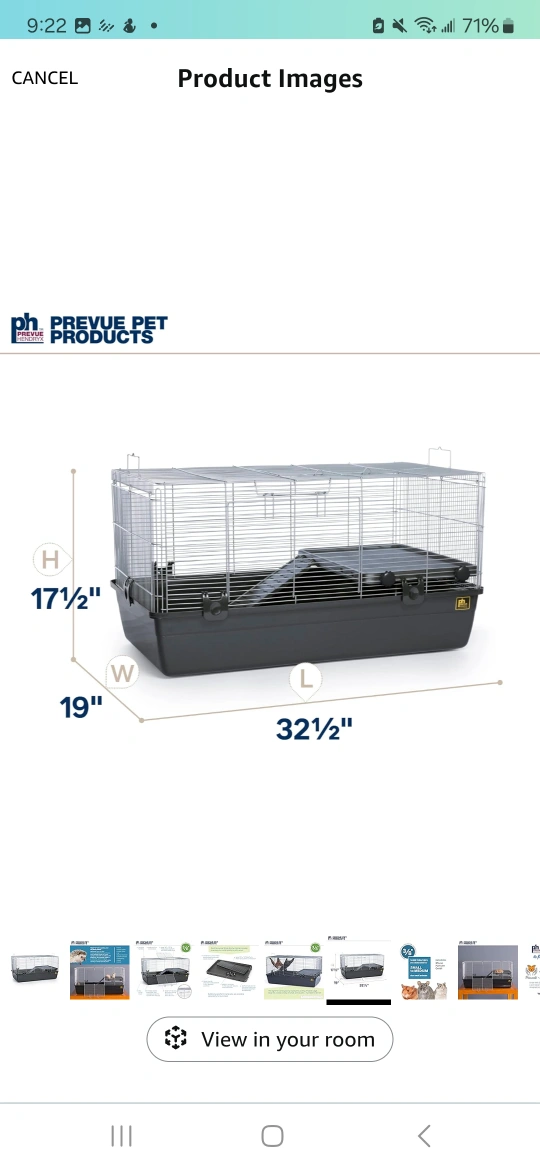 Large double-tiered cage, suitable for rats or hamsters.Dimensions: 32 1/2" L x 19" W x 17 1/2" H.