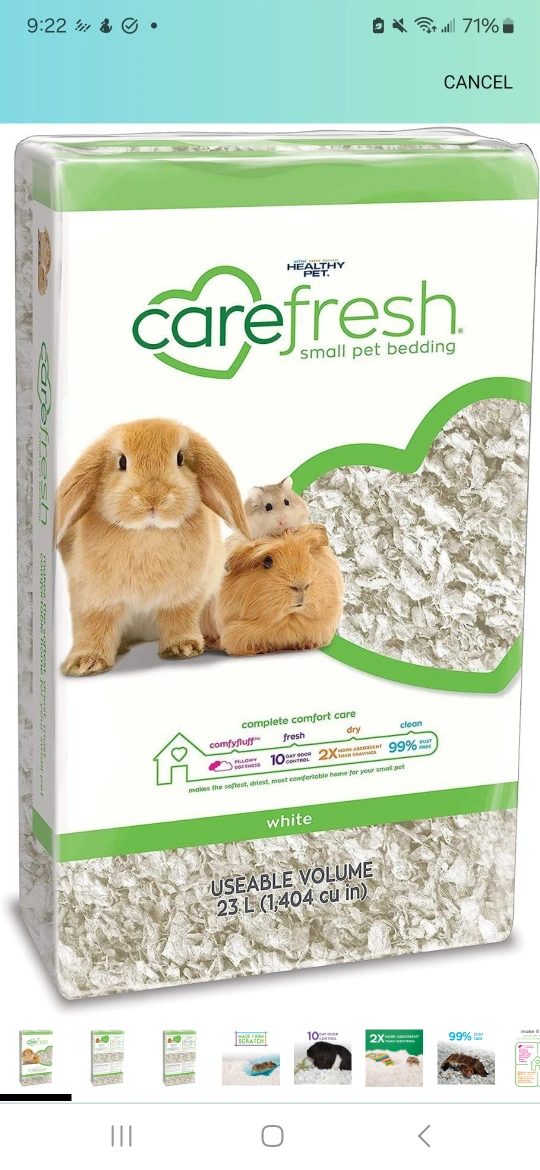 Paper-based bedding in cage (see brand in picture) .