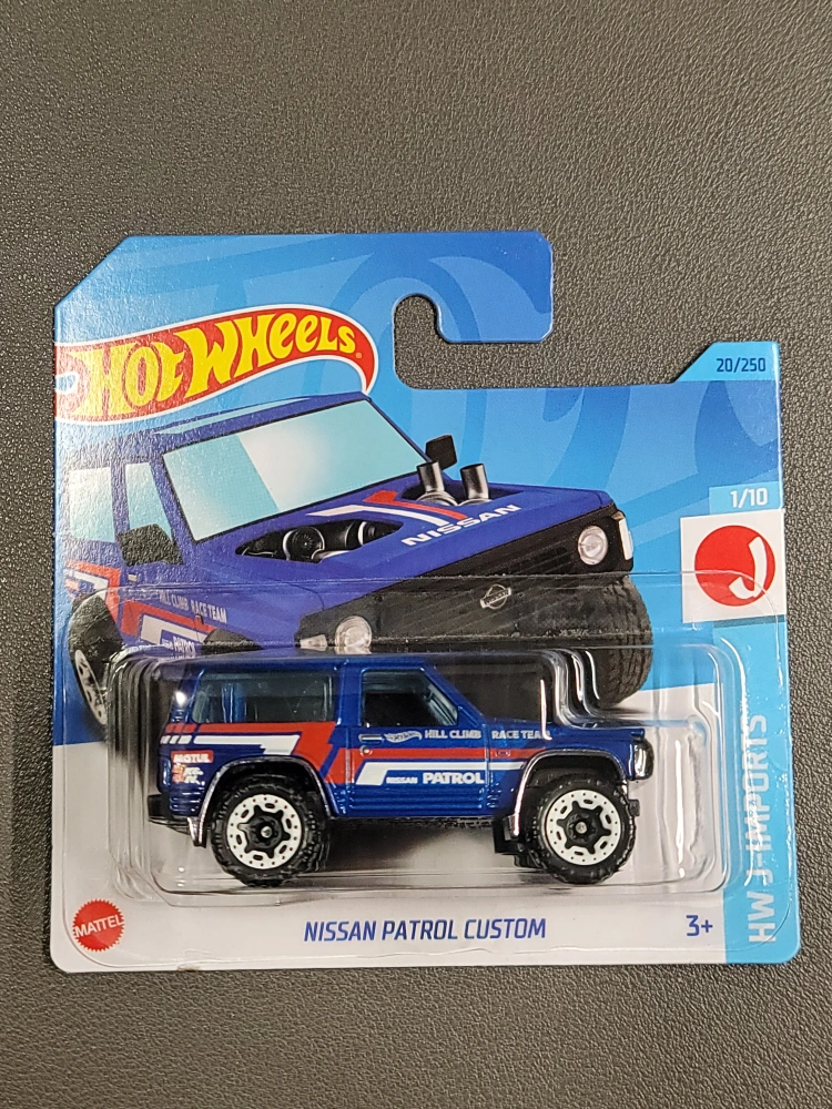39Collectible Hot Wheels die-cast car. Nissan Patrol Custom. Part of the HW J-Imports series. Blue with red and white accents. Numbered 20/250. New in package.