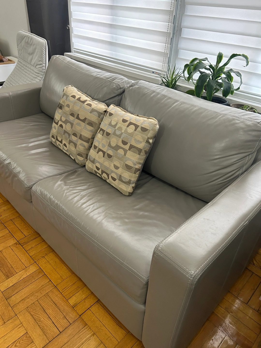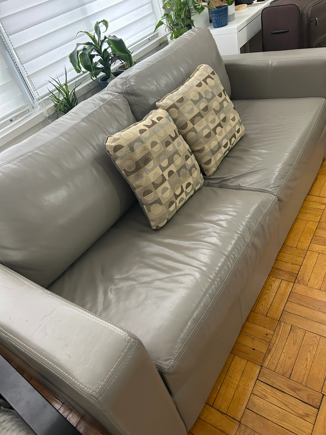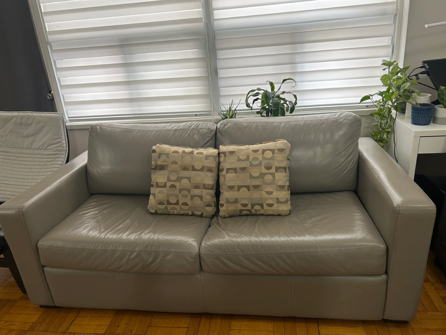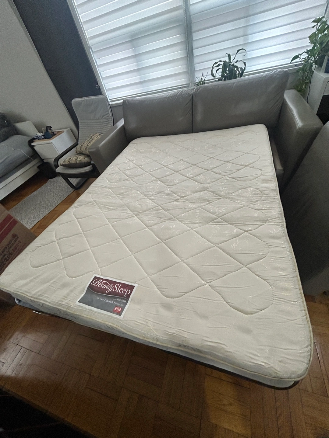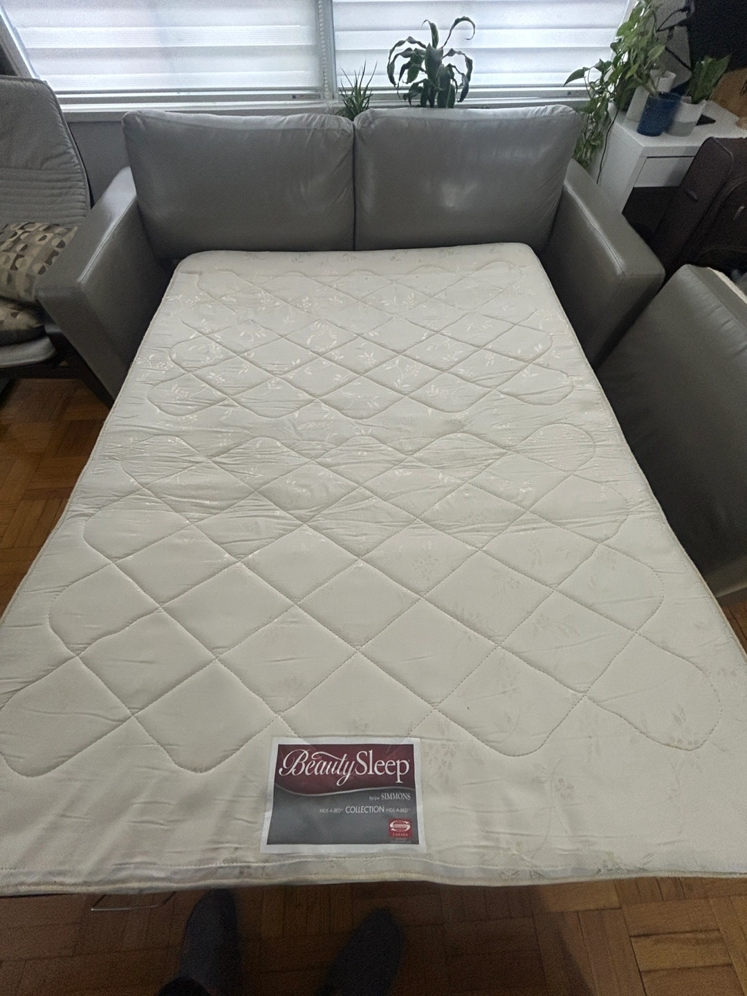 438Very comfy leather pullout bed sofa with Beautyrest mattress included. Selling for only 450 (price firm). Moving out sale - must be gone by end of March. From pet free smoke free and bug free home. No scuffs and no stains. Strictly for pickup only. Fastest pickup preferred at 95 gamble ave It is large and heavy so you need a truck/SUV/van need at least couple of guys to carry it. Dimensions 74” x 36” x 36” Pls see my other postings. Thanks
