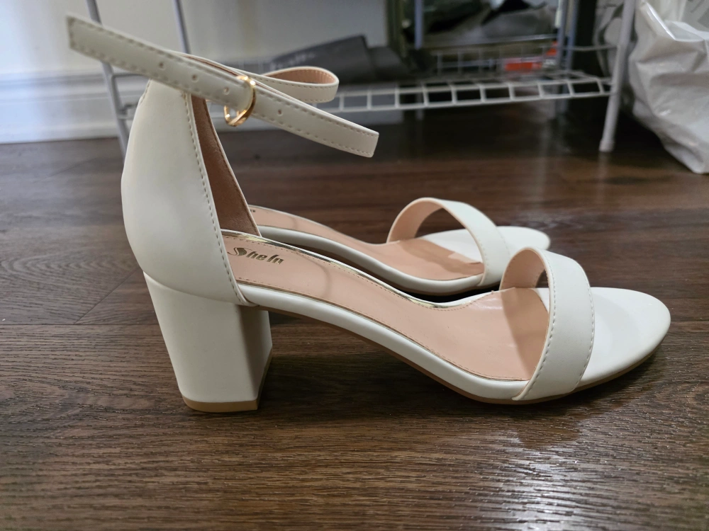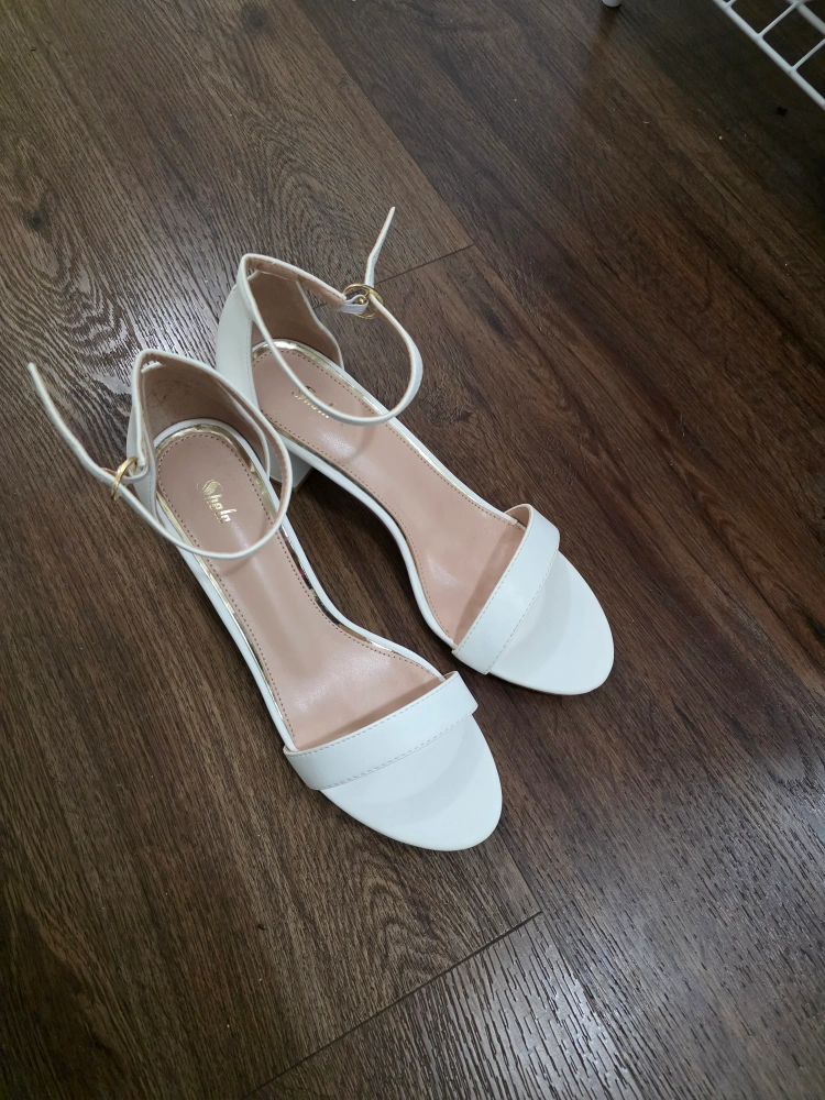 LAST CHANCE ITEMS WILL BE DONATED TO VALUE VILLAGE AFTER JUNE 15TH Women's white sandals. Block heel. Ankle strap closure. Size 38. Perfect for summers. New, never used. Some dust on the bottom side from shoe rack Fixed price