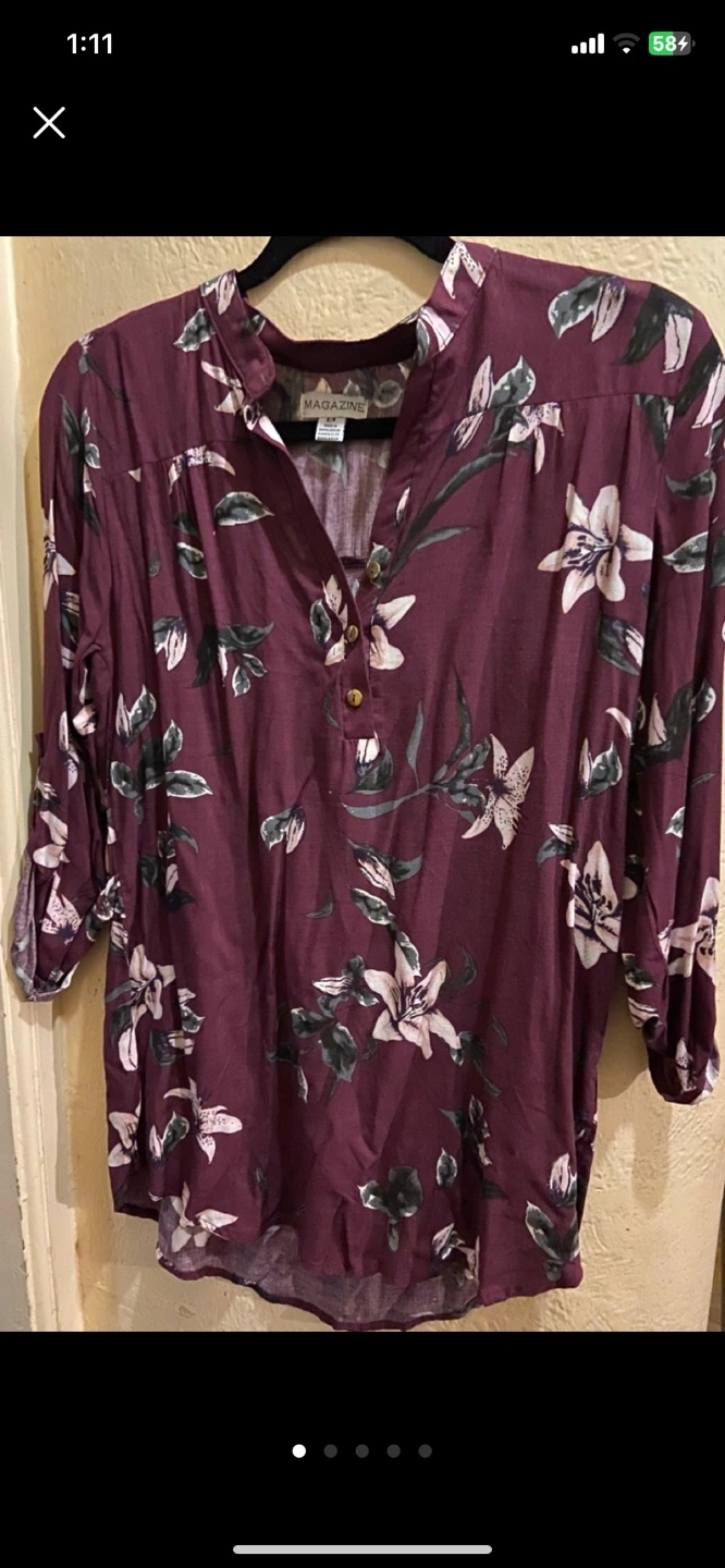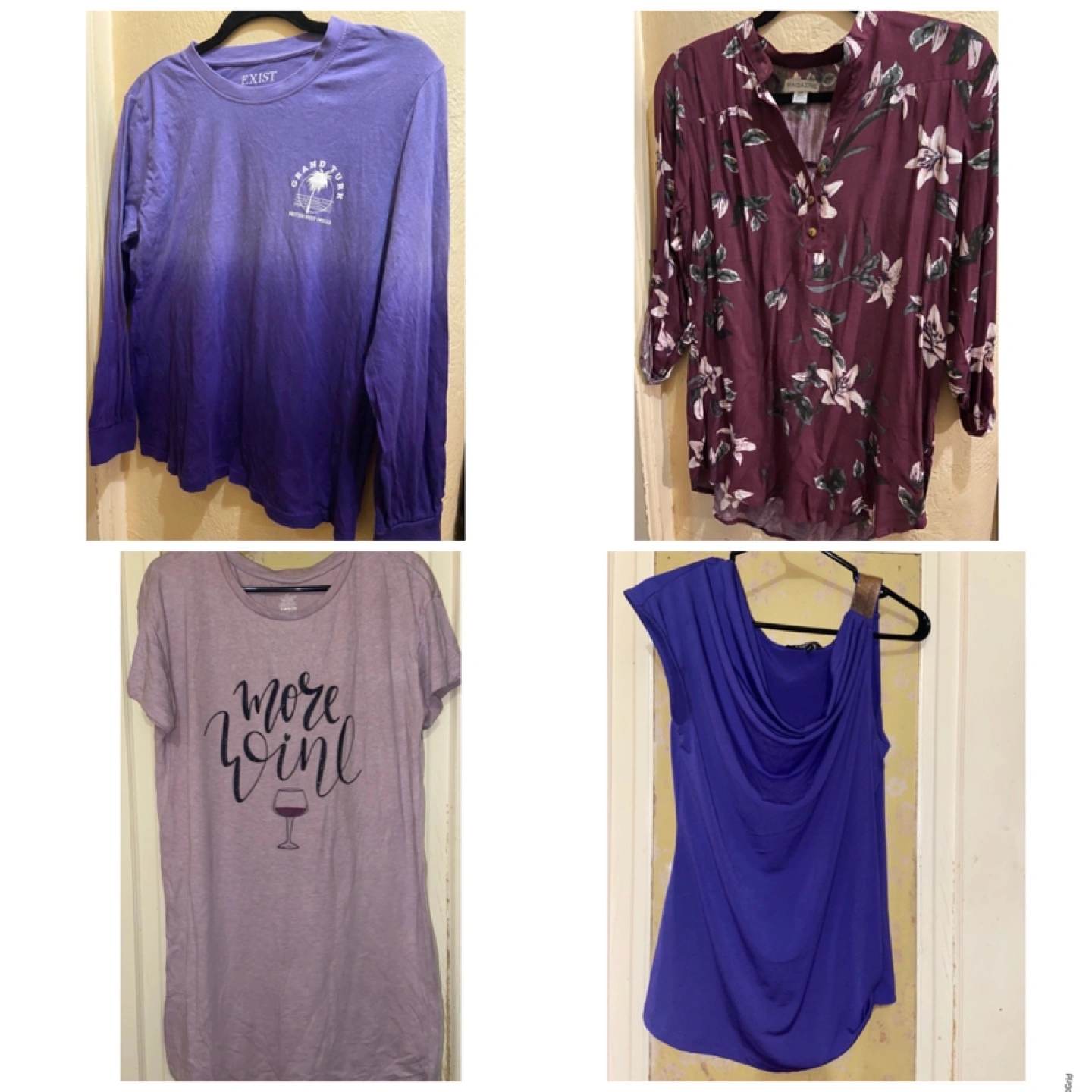 A. Long sleeve top szS Description Condition- in good condition Has no rips, stains Colour- purple fade Size- Small Long sleeve B. Women’s short sleeve top szS Condition- only try on. Never been worn ever since. In good condition and shape. Size- Small Colour- burgundy Brand- Magazine Elbow length sleeves. Baggy style C. Women’s sleepwear size small Condition- worn once In good condition Size- small Brand- George Sleeping wear “More wine” 60% organic cotton 40% polyester D. George Women’s top size small Condition- worn once In good condition Size- small Colour- purple blue Brand- George 95% polyester 5% spandex Payment- Cash only No Refunds / Exchange No try ons, No trading No holds. (First come, first get) All purchases are Finally Sale From a Smoke Free home Price-$5 for each Pick up - At TTC Coxwell subway station Located in East York, Toronto DM if you are interested Please check out my other listings