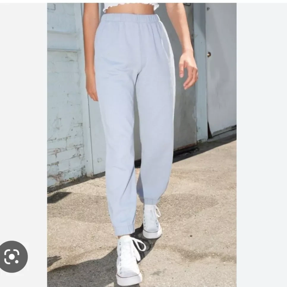 Selling these brandy melville rosa sweatpants in light blue. It is in good condition with slight pilling on the inside and a minor stain on the back (very light and not very noticeable). It is one size but could fit an xs - m. Retails $52 +tax (on pacsun).