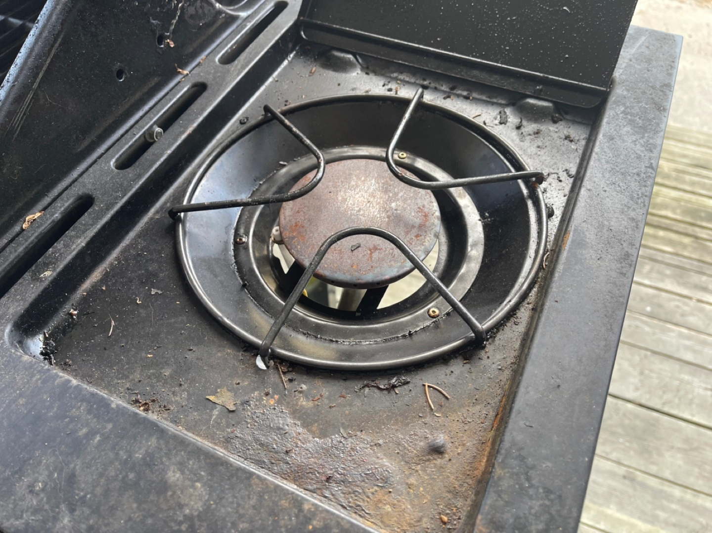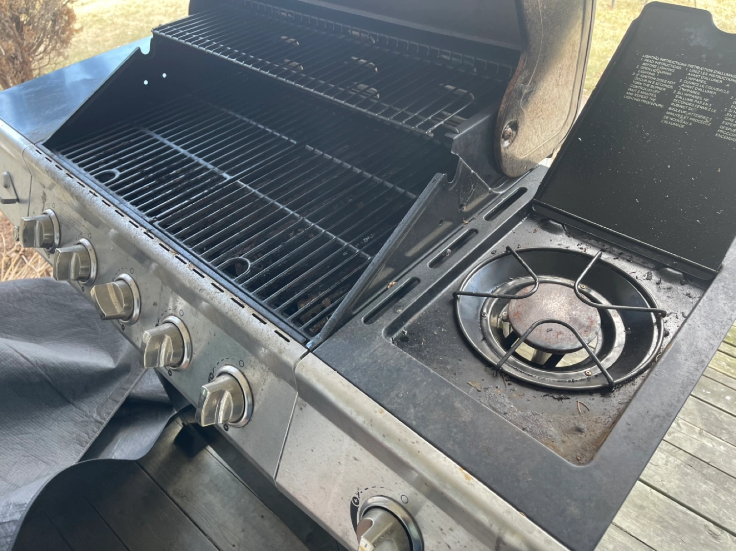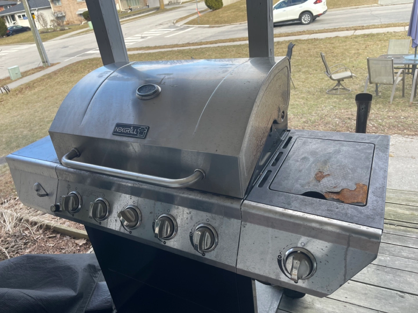 Nexgrill BBQ with side burner. In decent shape but could use a bit of cleaning. There’s some rust on the side burner, but everything works fine.
