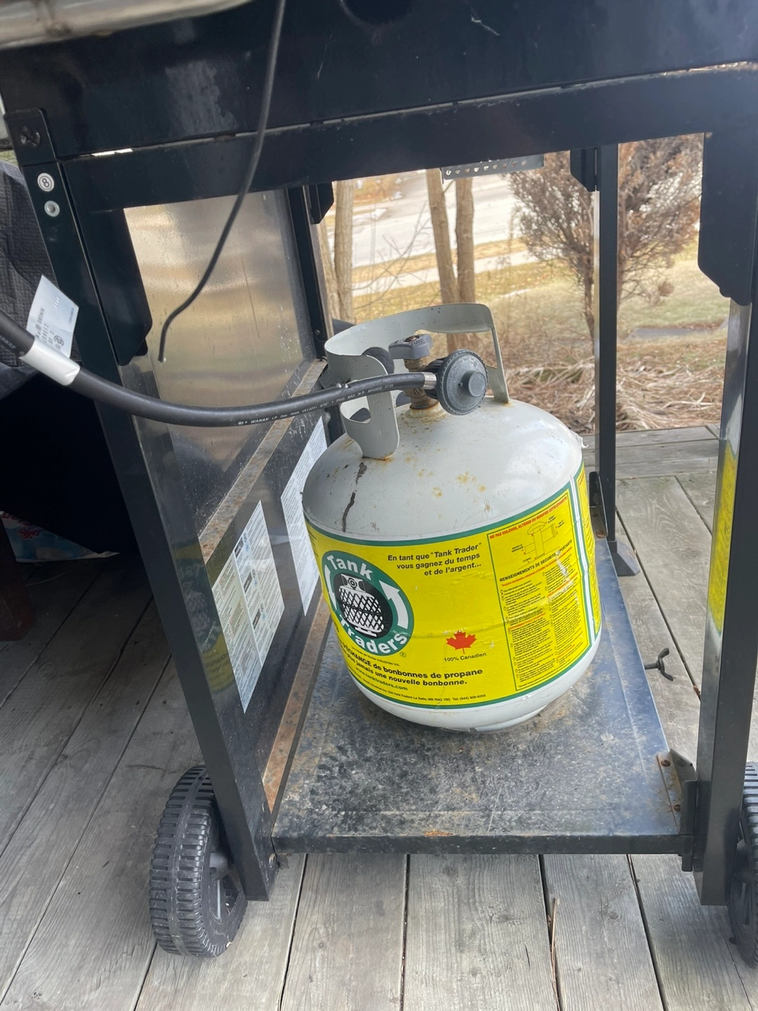 - 2 propane tanks (one half full, one empty)