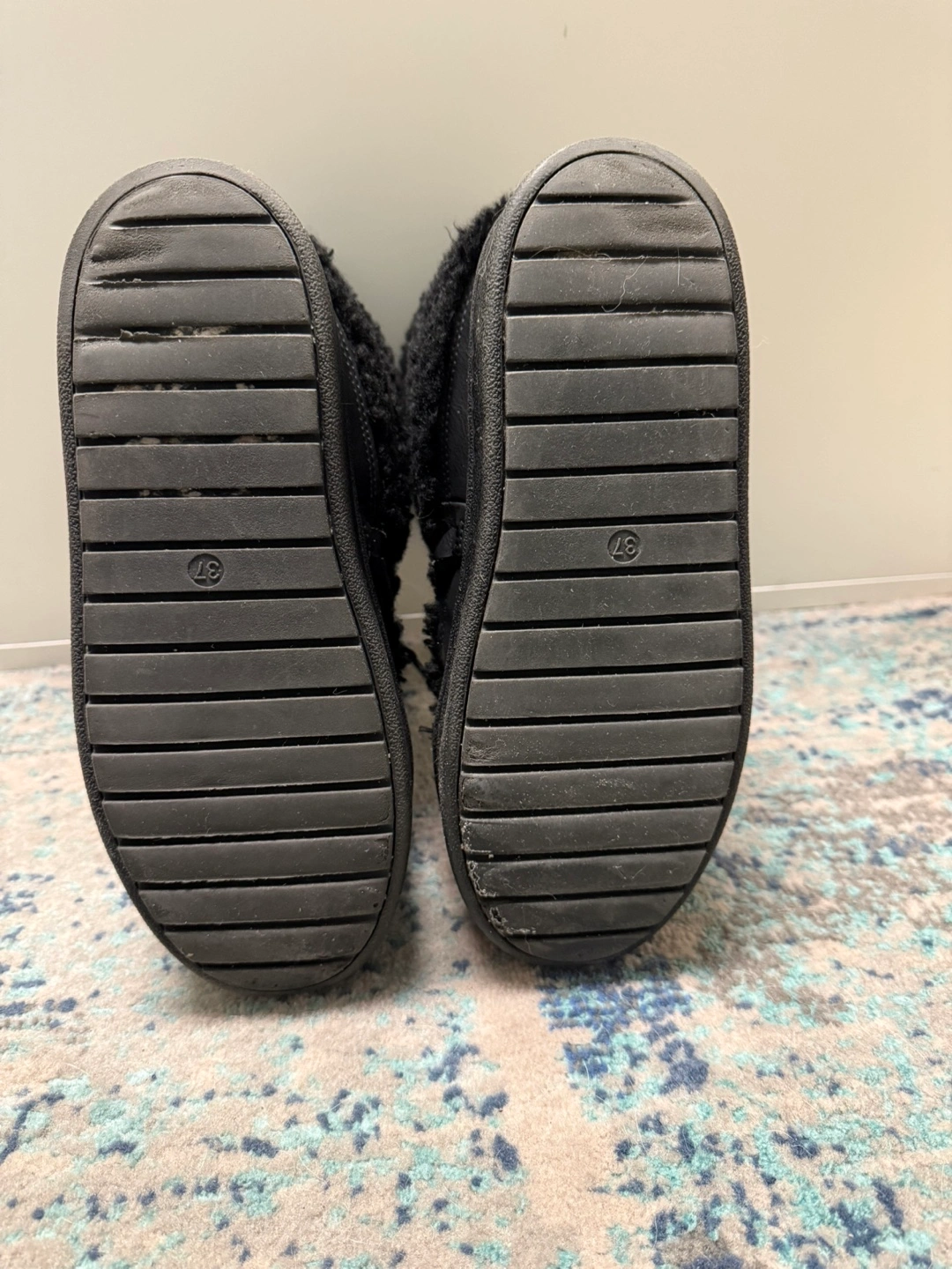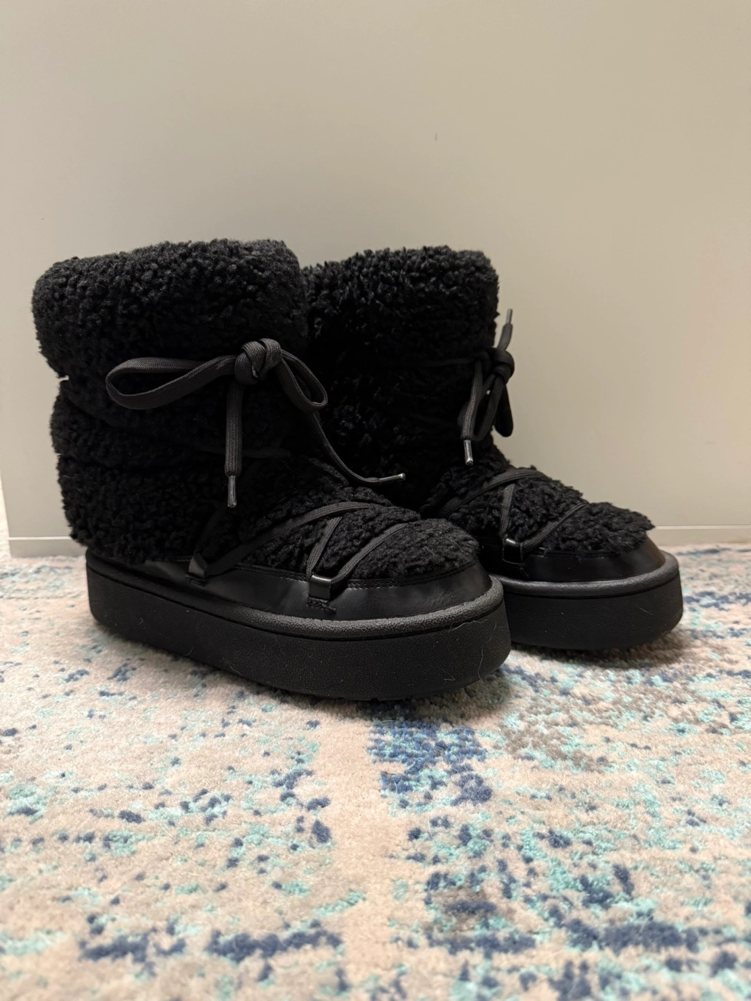 Cozy black sherpa ankle boots. Platform sole. Lace-up closure. Excellent for winter. #freecycle