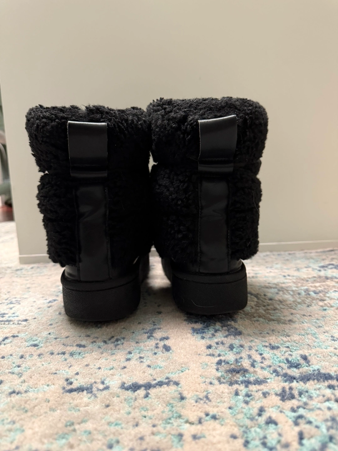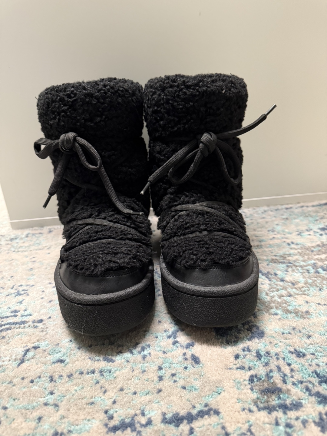 Cozy black sherpa ankle boots. Platform sole. Lace-up closure. Excellent for winter. #freecycle