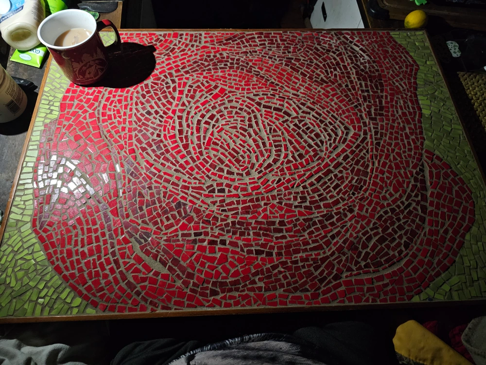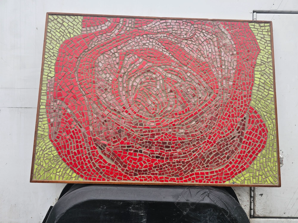Art: A heavy, tiled rose piece, bought $400 from the artist, but take $125 obo now only $60; lowest i'll go. Has wood cleat on back to hang. Pics don't show the shiney red tiles; better in a good light. if interested i can send more pics.