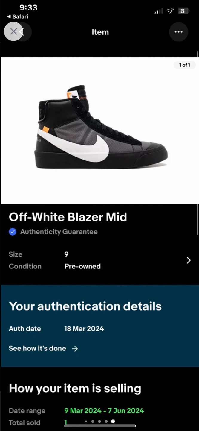Size 9 off white blazers with box, zip-tag, and extra laces!