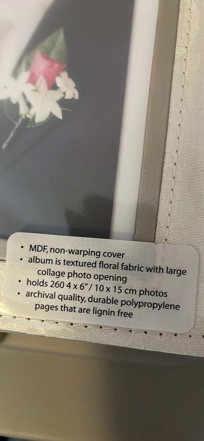 Archival quality photo album. MDF, non-warping cover. Textured floral fabric. Large collage photo opening. Durable polypropylene pages. Lignin free. $15 each Bradford pick up porch pick up CASH Only please π