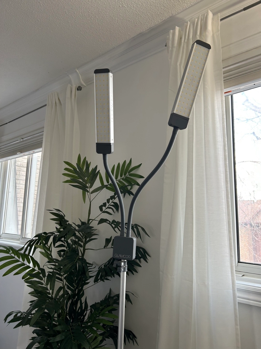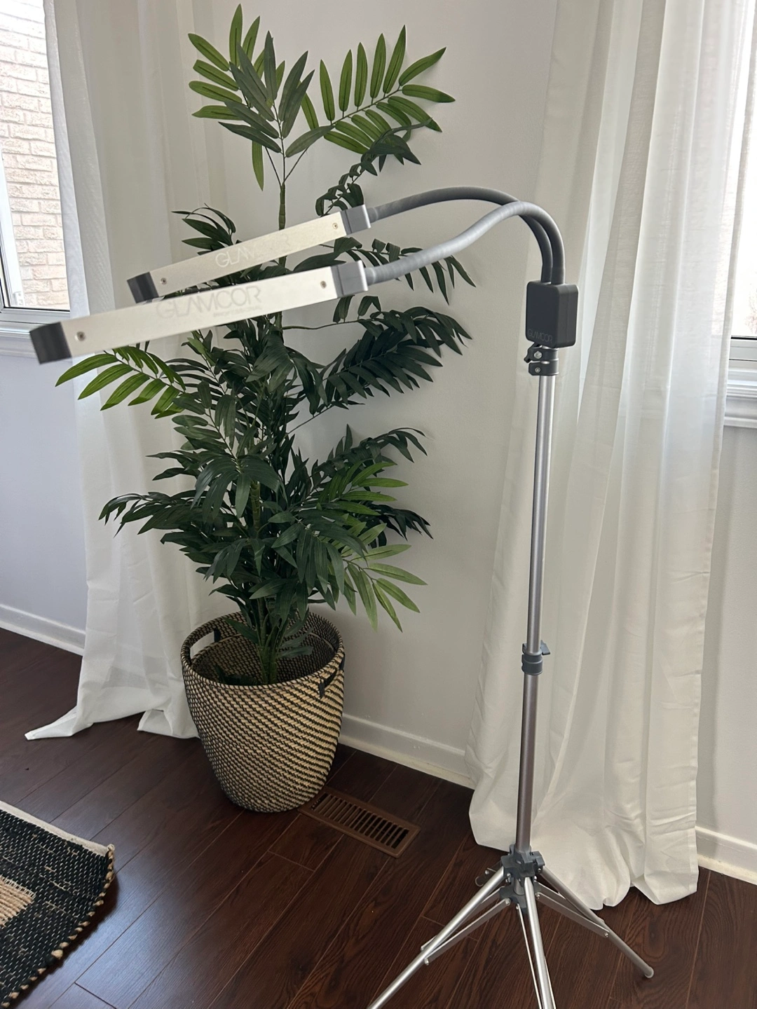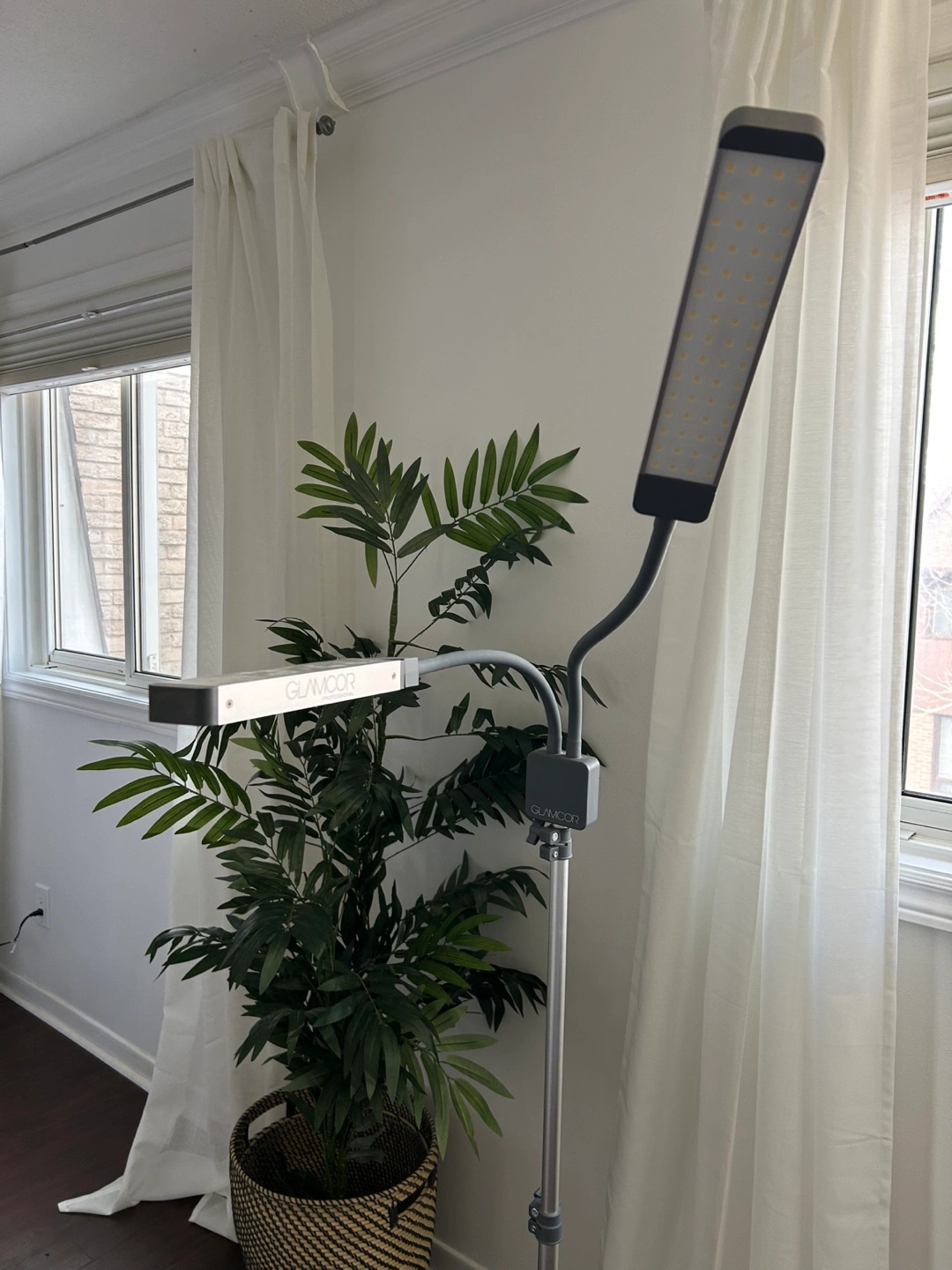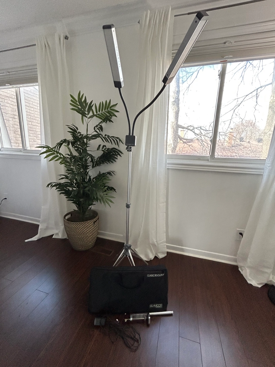 GLAMCOR is a LED lamp with two flexible arms of different lengths, designed to bend across wide. The updated arm design makes it easier to configure your lighting angles to better reach your treatment areas. No more awkward angles or shadows. It also generates nearly zero heat so you can light up you (or your client's) face without discomfort. No more sweating!