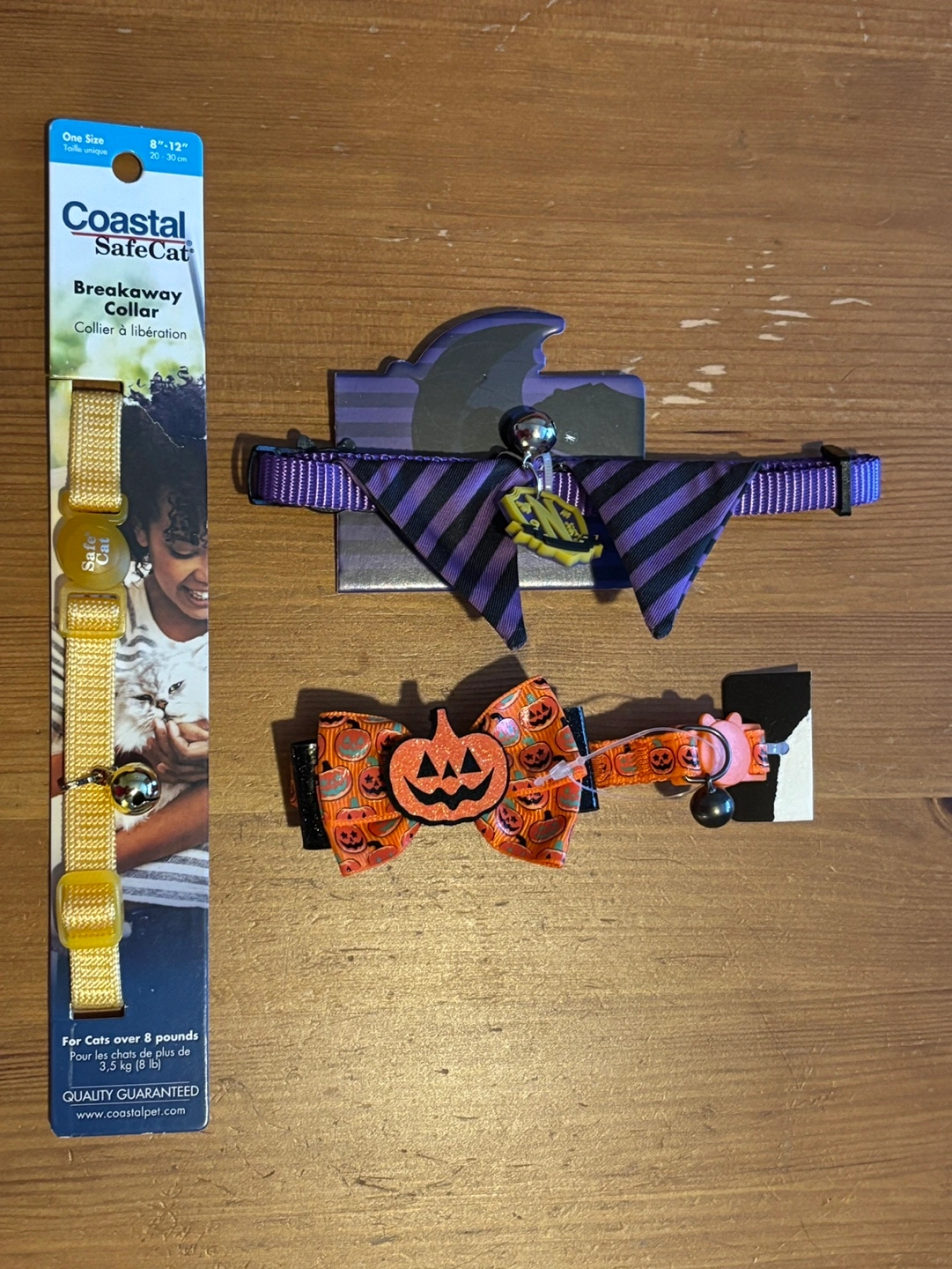 * One purple and black bow tie collar with a bell