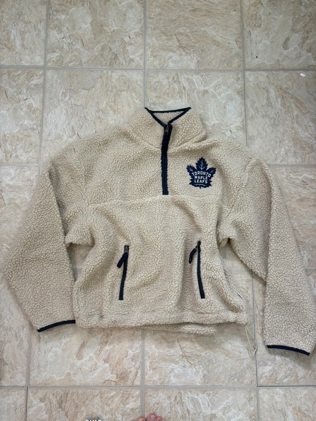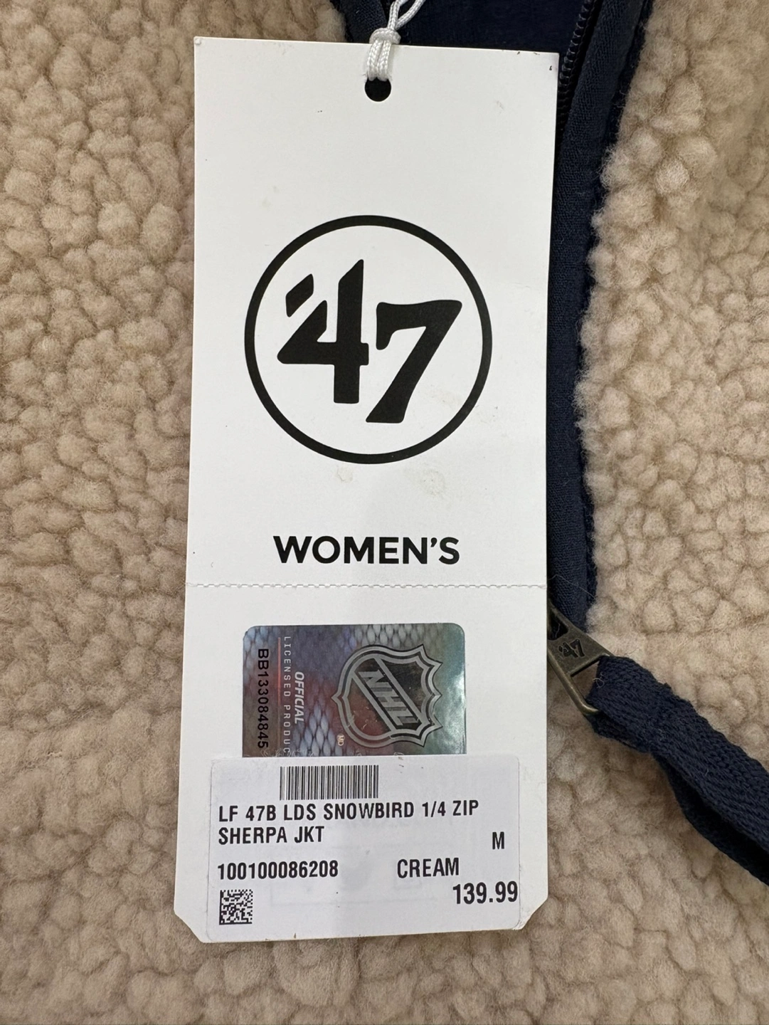 BRAND NEW WITH TAGS💙 🏒 Toronto Maple Leafs ~ 47 Brand WOMEN’S SNOWBIRD 1/4 ZIP SHERPA JACKET🧸 ** Maple Leafs 47 Brand Women's Snowbird 1/4 Zip Sherpa Jacket The Snowbird ’47 1/4 ZIP is made from Boca French Terry featuring a distressed screen print and embroidered left cuff. • Boca French Terry • Distressed Graphic • Embroidered Left Cuff