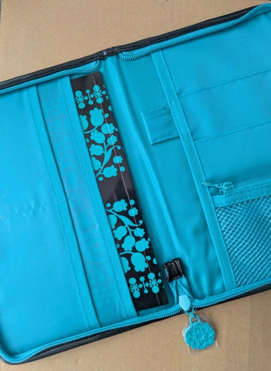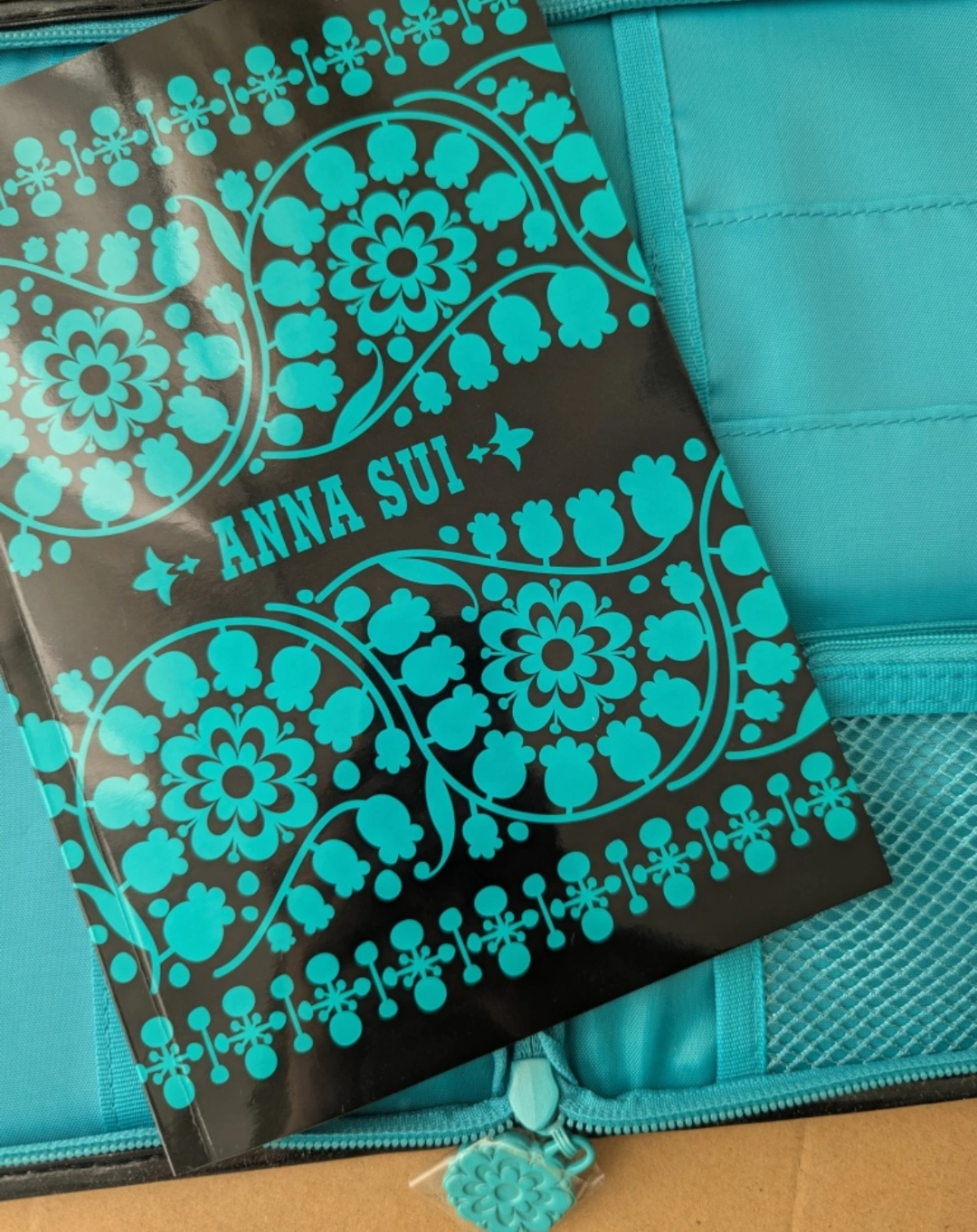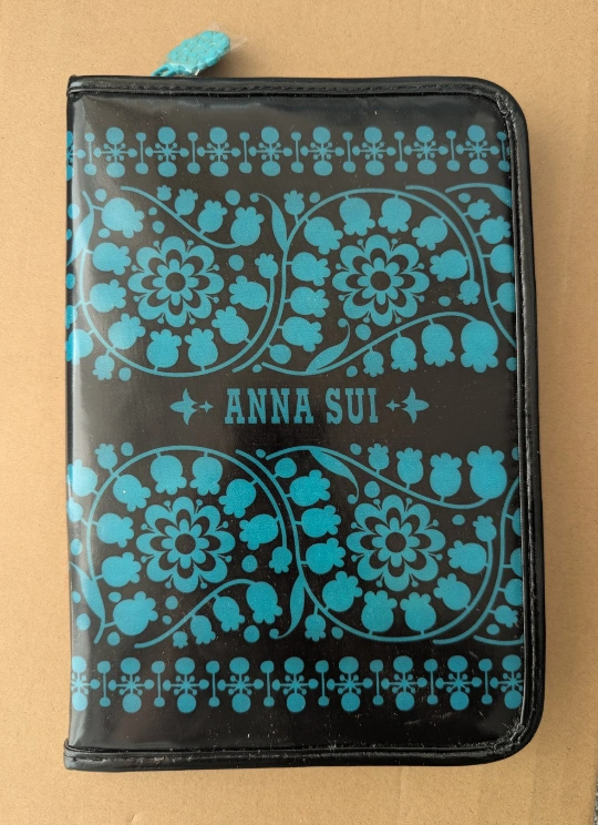 Anna Sui teal floral pattern small zippered travel binder