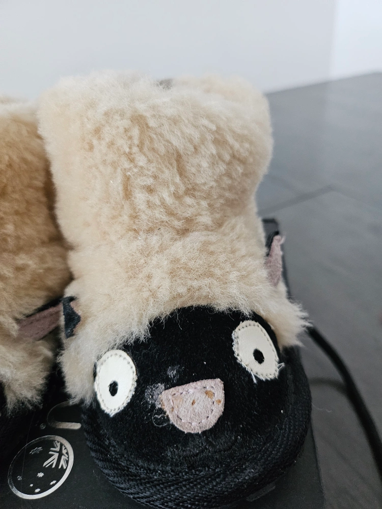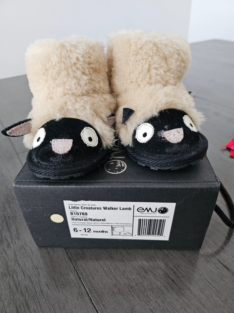 456Adorable sheep-shaped baby booties. Soft, fluffy sheepskin. Durable rubber soles. Perfect for keeping little ones warm and cozy. Size 6-12 months. Gently used. worn less than 3 times. Pick up only, Keele Major Mackenzie
