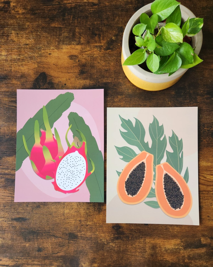 beautiful fruit illustration prints set of 2, comes with a plastic cover to protect the art work. each print is $15 or 2 for $25