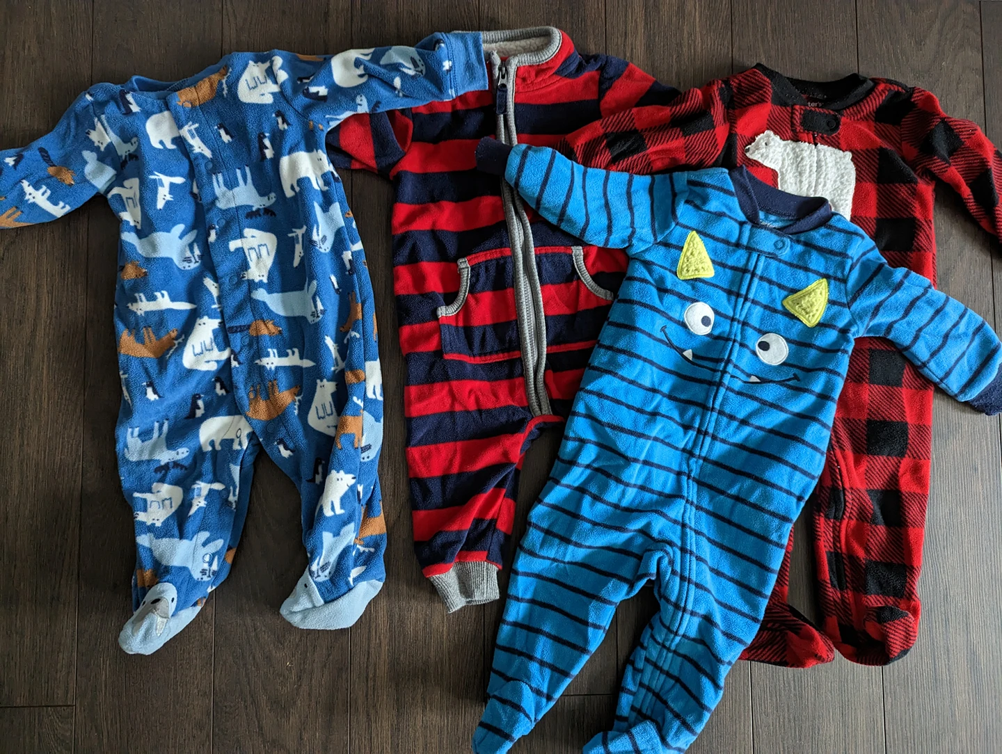 Bundle of 4 Carter's fleece onesies for 6 months old. In excellent condition. From non-smoking non-pet and safe environment. Pick up location: Bayview/John
