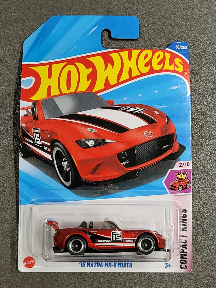 39Hot Wheels diecast car. Red Mazda MX-5 Miata. Part of the Compact Kings series. Number 2 of 10.
