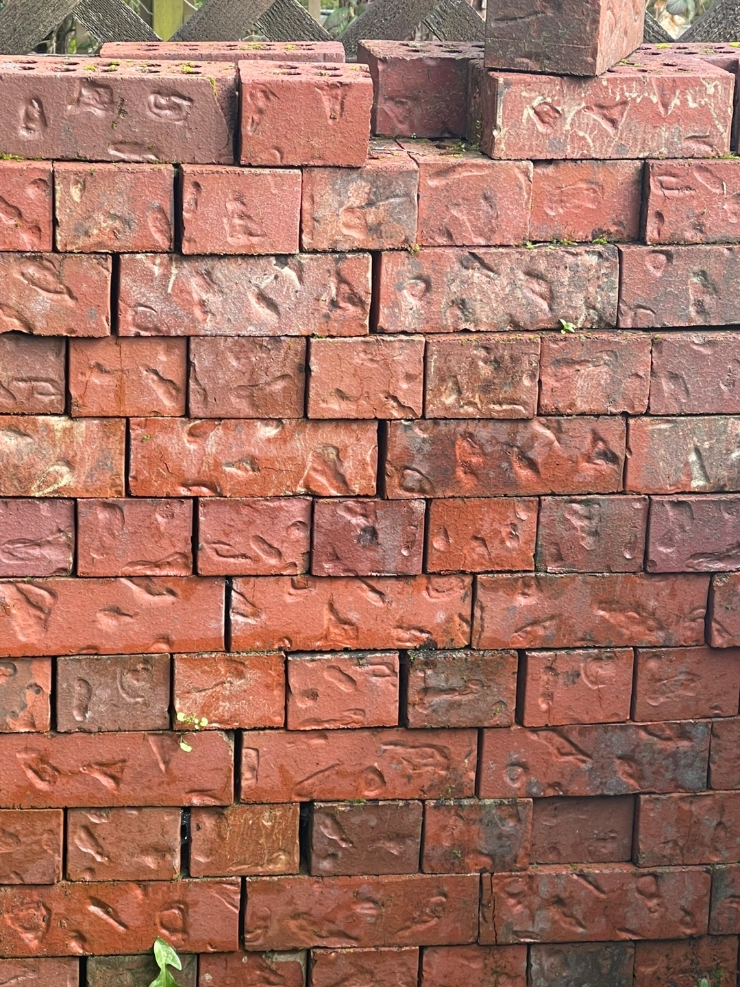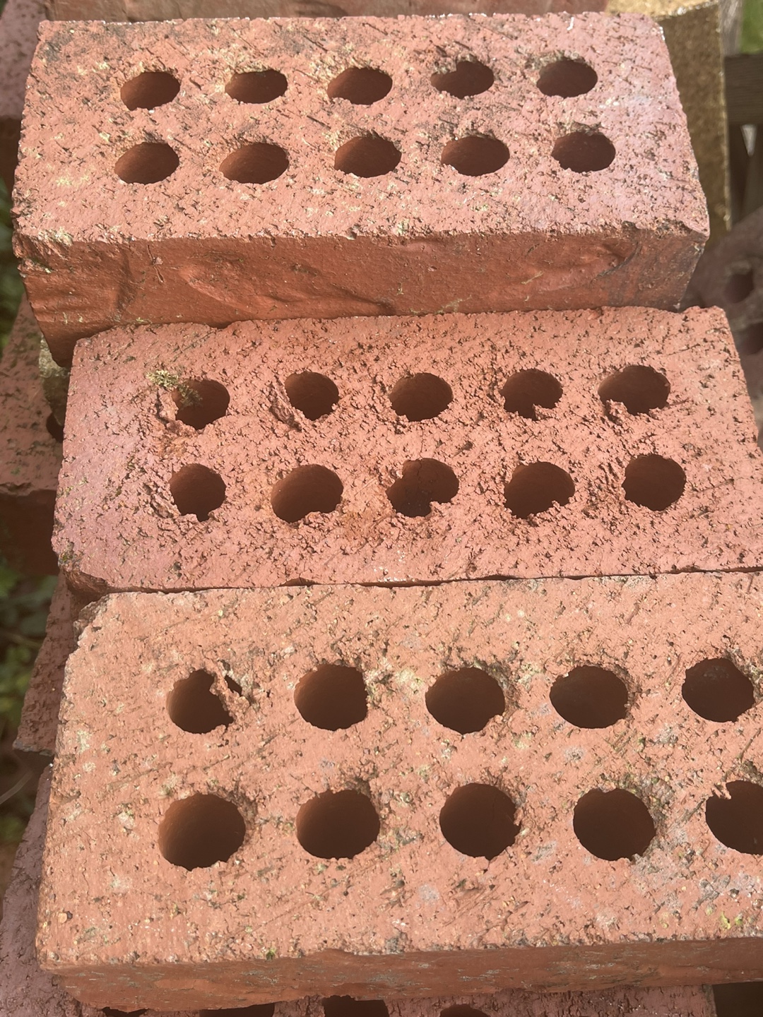 Free 🧱Collection of reclaimed red bricks. Various sizes and some weathering. Ideal for landscaping or DIY projects. Sold as a lot. Holes for easier handling.