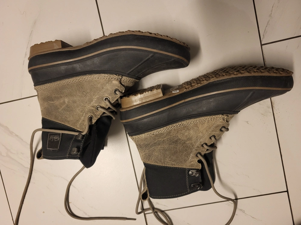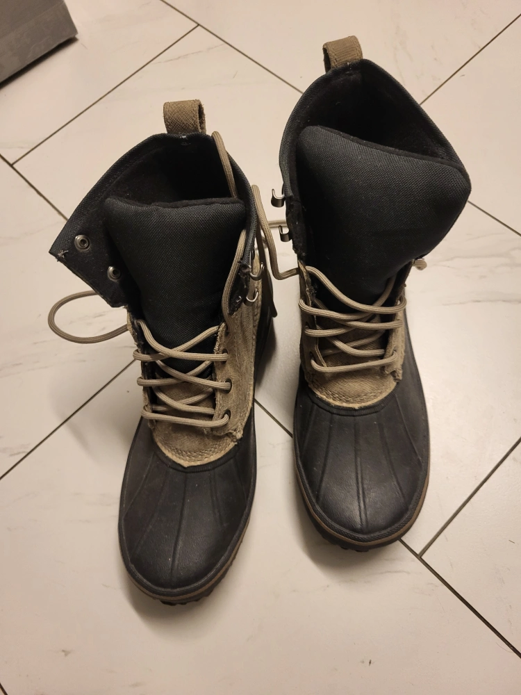 mens winter boots. Lace-up style. Beige and black colour. Good tread. T-Max brand.