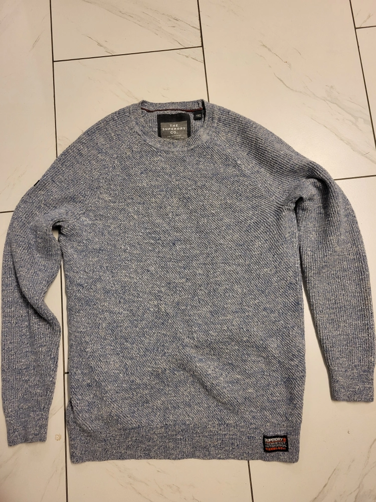 Men's medium Superdry sweater. Blue and white colour. Premium knit. British design. Long sleeves. Crew neck.