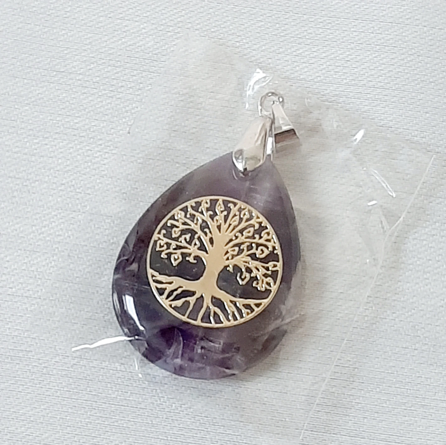 Brand new in original packaging. Natural Amethyst stone seven chakra reiki healing tree of life pendant.