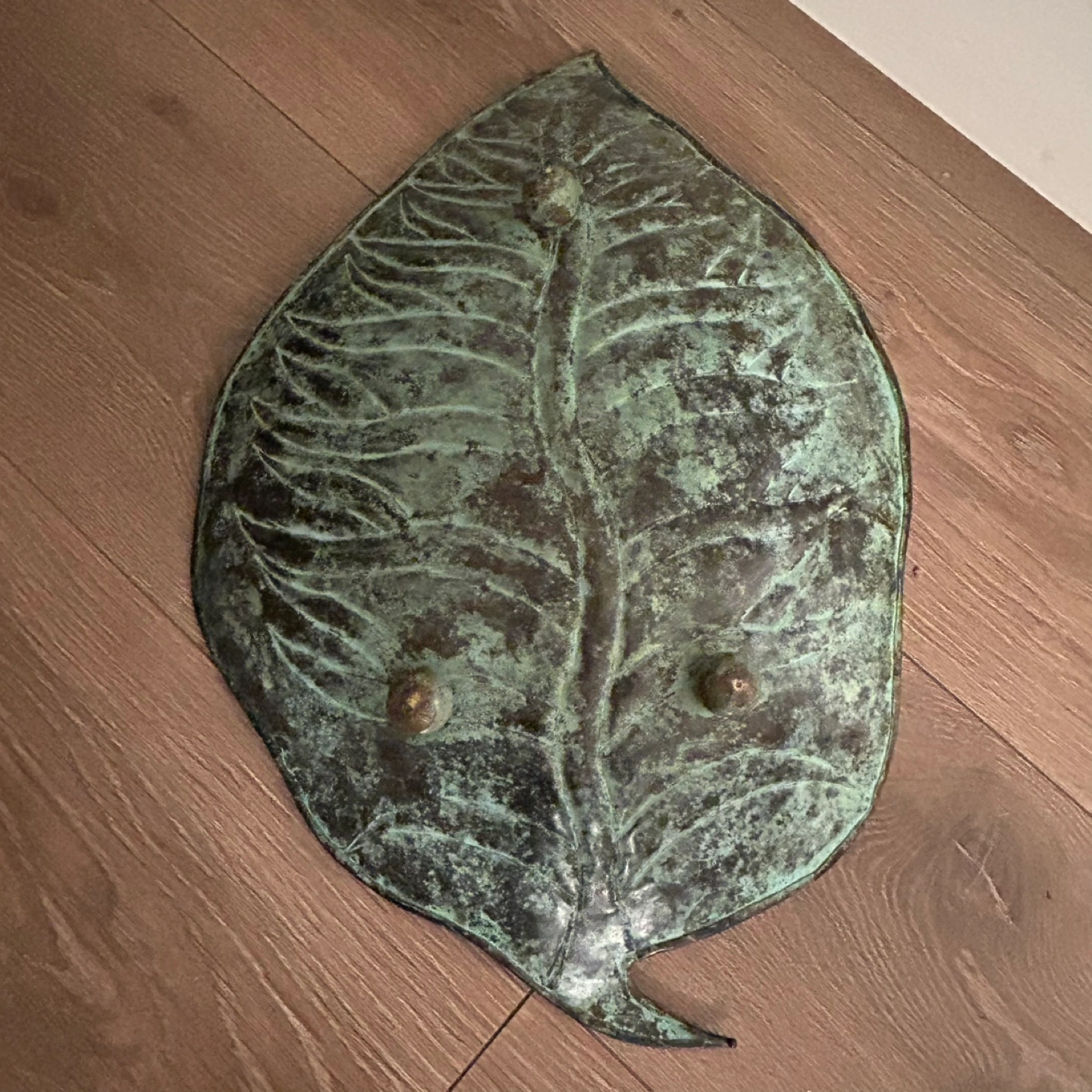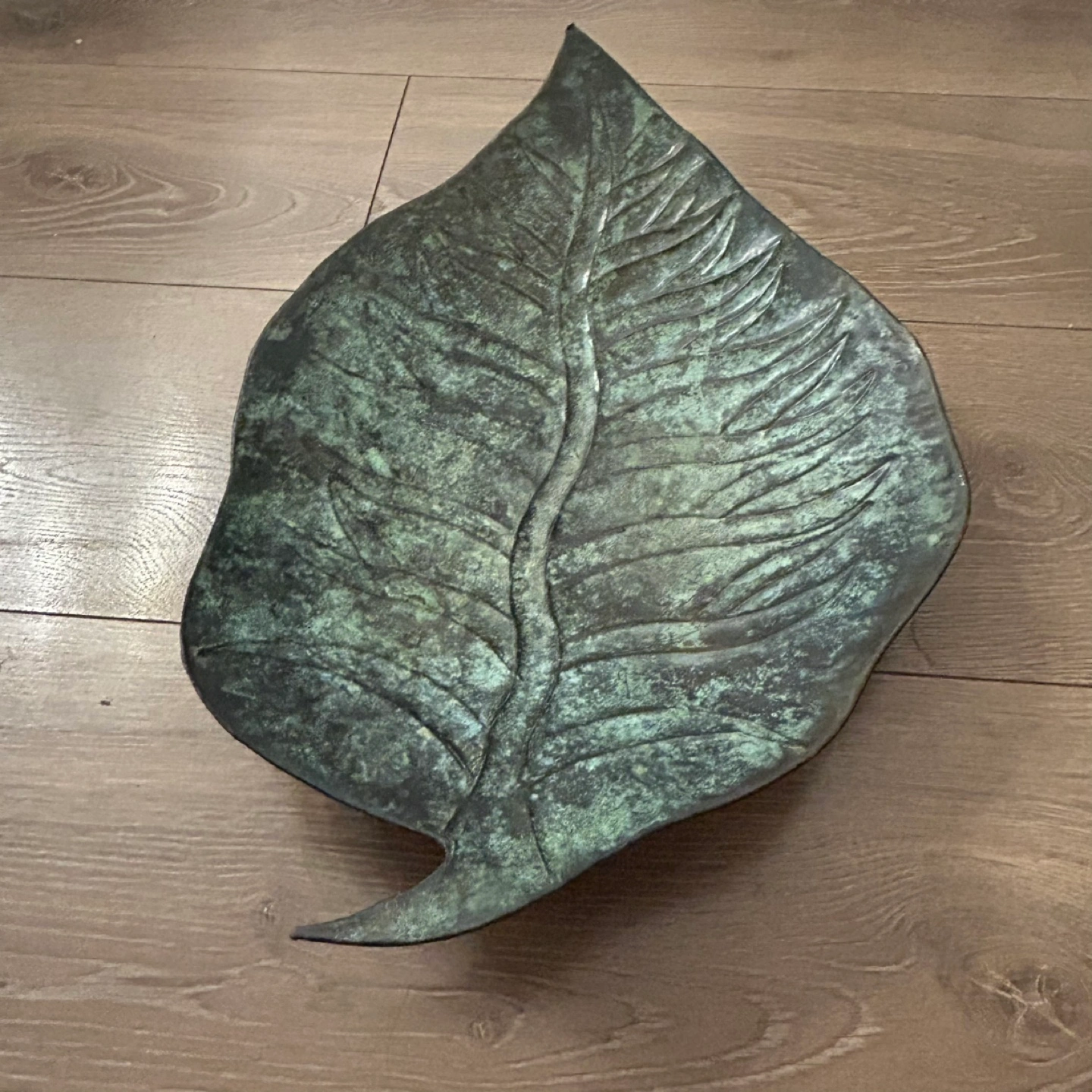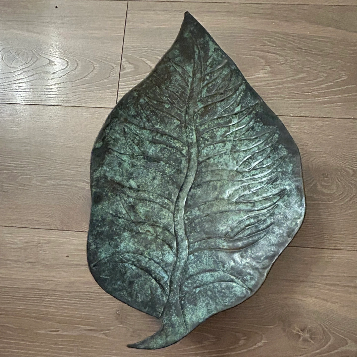Vintage Brass Leaf Tray with Patina 17”/11”