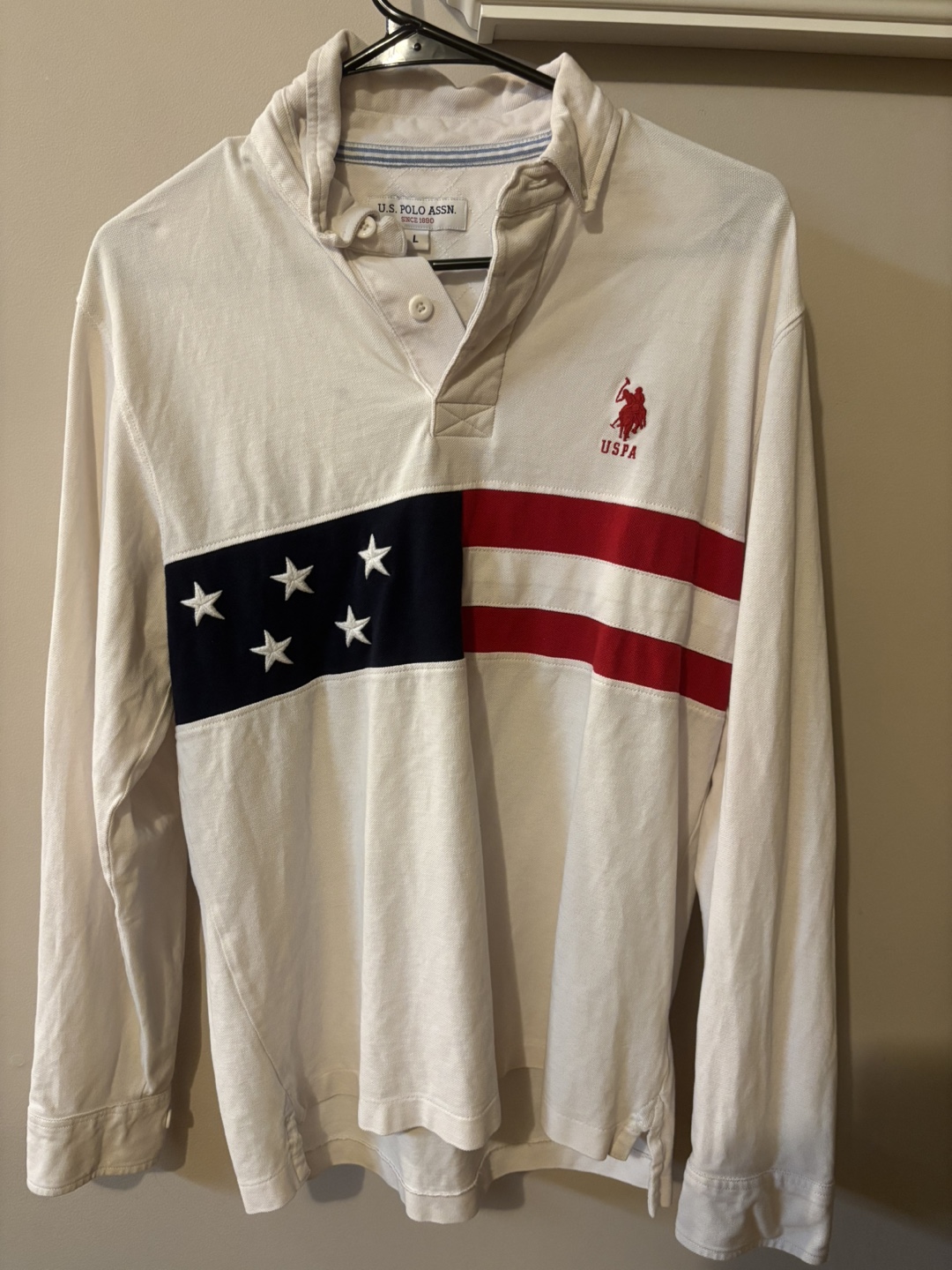 1 / 11 / 1Buy & SellUS Polo Assn. Men's Long Sleeve Rugby Shirt Size LargeUS Polo Assn. Men's Long Sleeve Rugby Shirt Size Large$20Original Men's long-sleeve rugby shirt. White with a navy and red stripe design. Features a USPA logo. Size large.ConditionGoodBrandU.S. Polo Assn.WHERE TO MEETJoyce CollingwoodView MapSELLERverifiedUvinduDowntown17512 reviews0 chats·1 favorites·9 viewsSEND CHAT TO SELLERHi Uvindu! I’m interested in your listing.Hi Uvindu! I’m interested in your listing.Get the Karrot app to chatSign In to chat