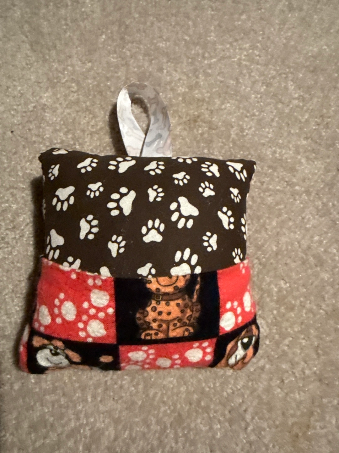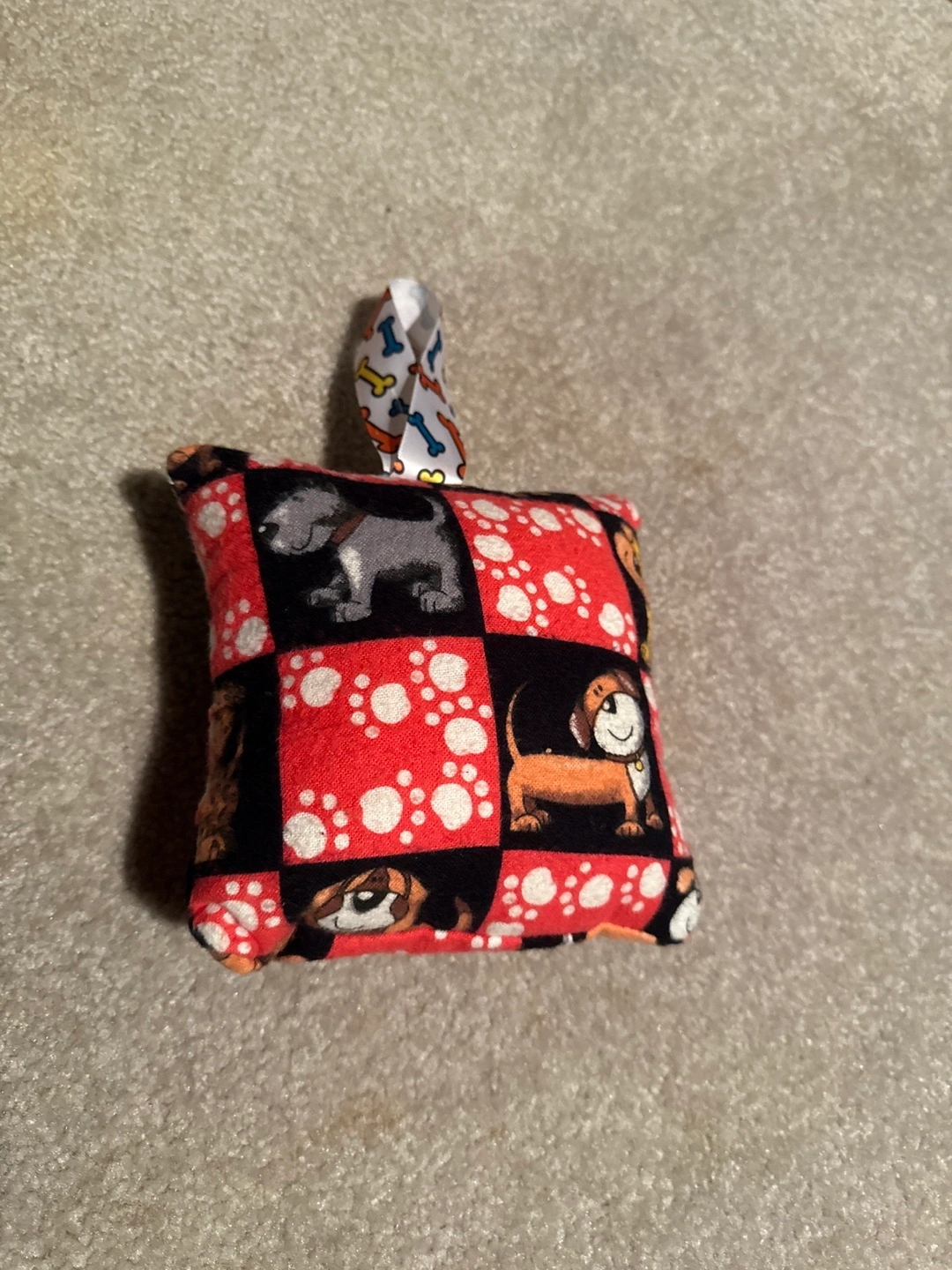Adorable handmade dog-themed sachet. Features paw prints and dog illustrations. Small and square. Perfect for adding a tooth to the lil pocket for the tooth fairy to come.