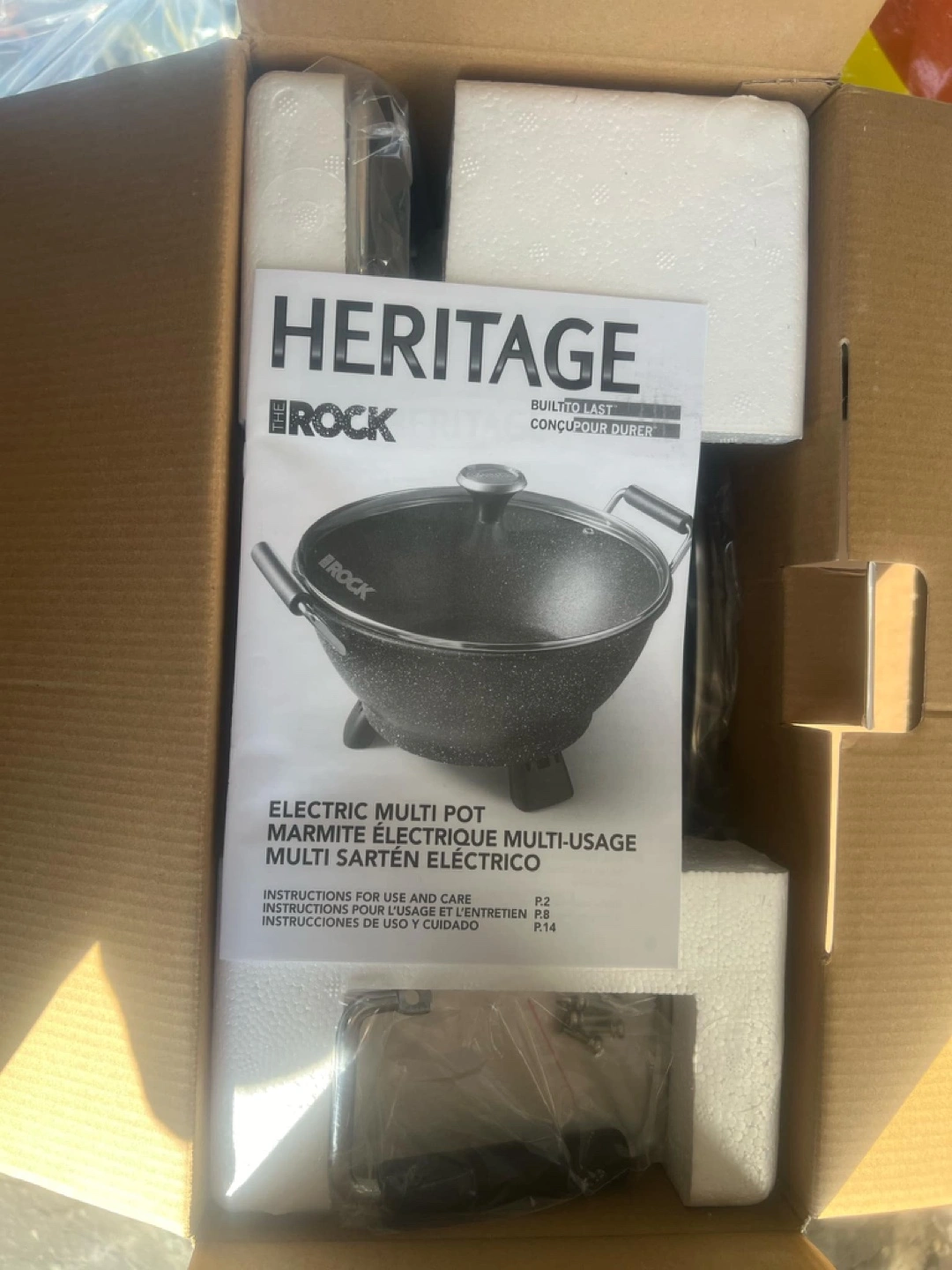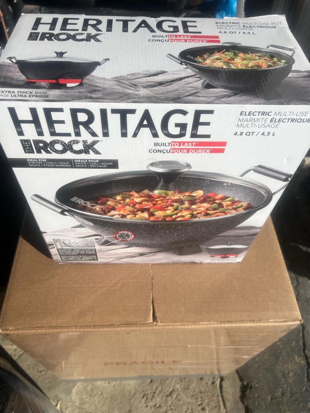Brand new, in box. 90$ retail, selling for $45. Electric multi pot, 4.8 QT/4.5 L. Extra thick base. Ideal for stir-fry, soup, sauce, and more. Includes instructions.