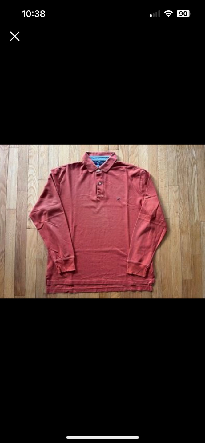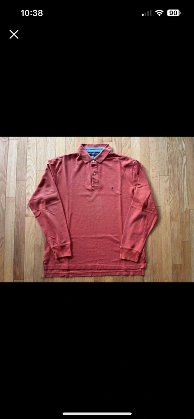 For sale is an authentic, orange Tommy Hilfiger long sleeve polo in size large. Polo is in good condition, no rips, stains or odors. It is clean and ready to be worn.