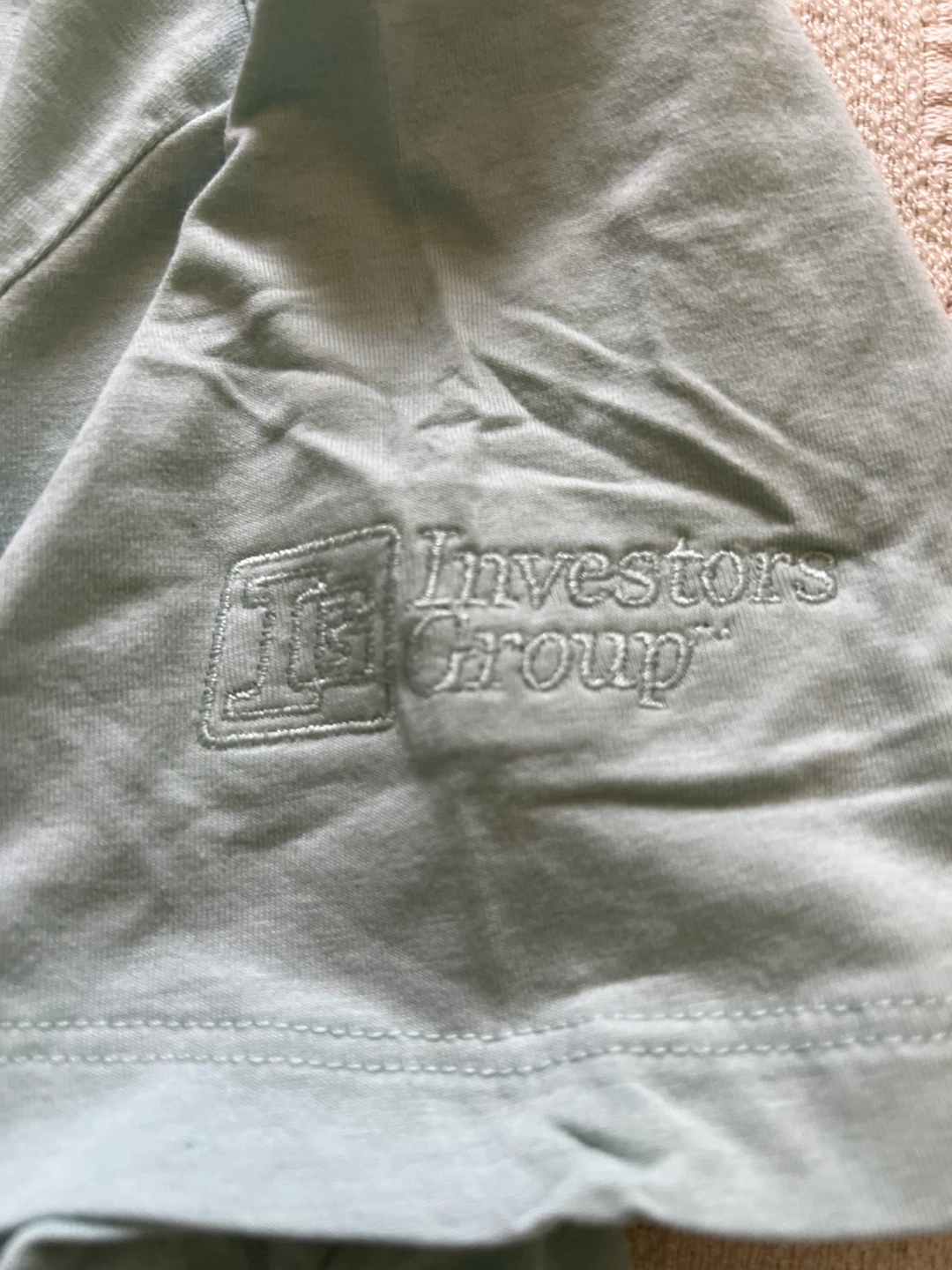 Women's light mint green polo shirt. Size large. Embroidered Investors Group logo on sleeve. Soybean fabric. Eco-friendly. Short sleeves. Button-down collar. New with tags. Smoke free home Pick up near Glenanna Road and Hwy 2 If ad is still up it’s available