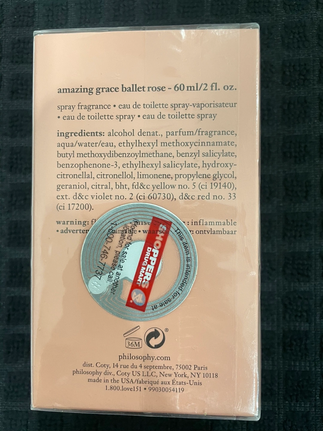 60ml/2 fl. oz. spray fragrance.Brand new seal packed from shoppers drug-mart