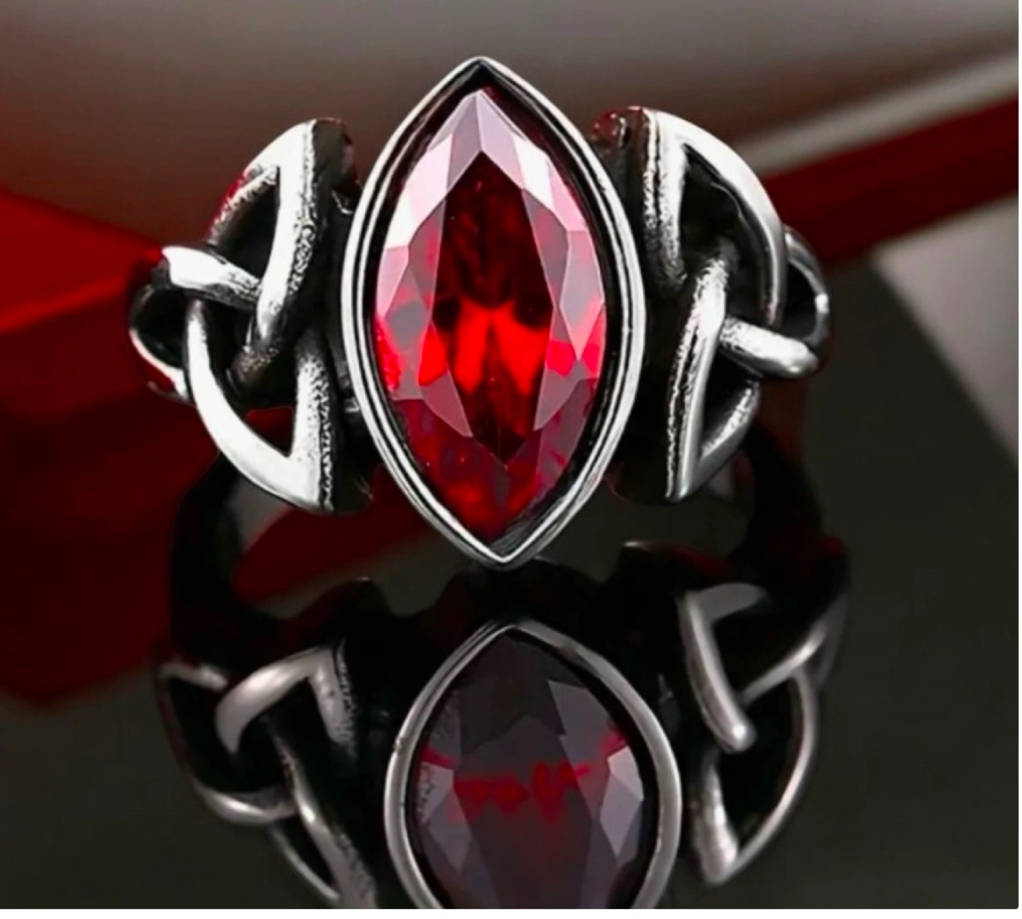 New Vintage Style Stainless Steel Celtic Knot Ring with Red marquise