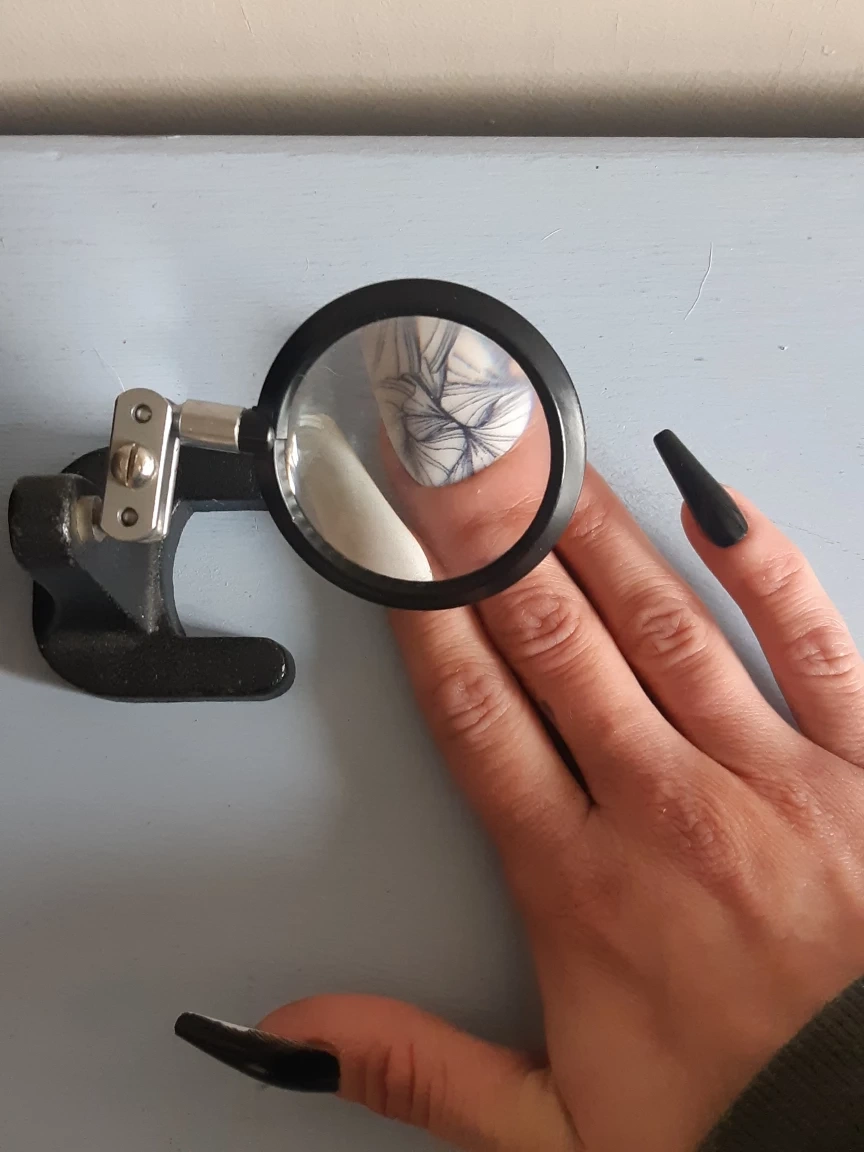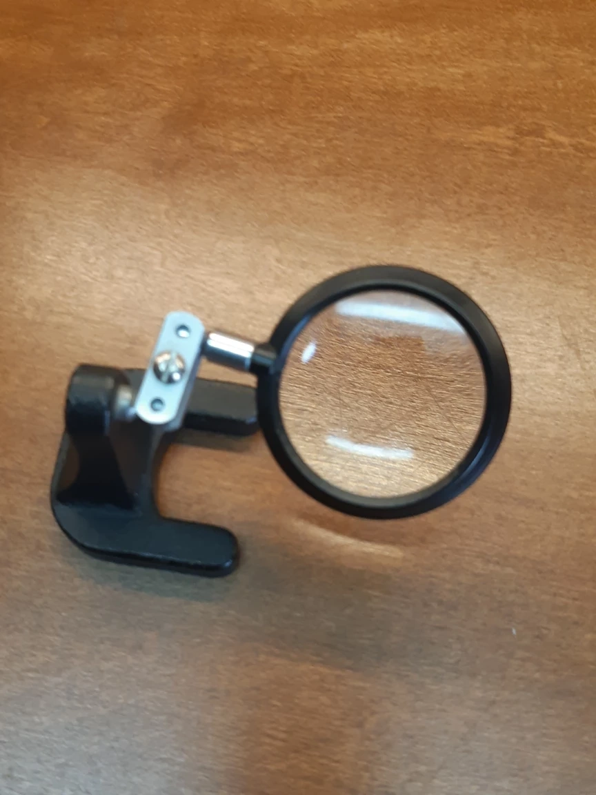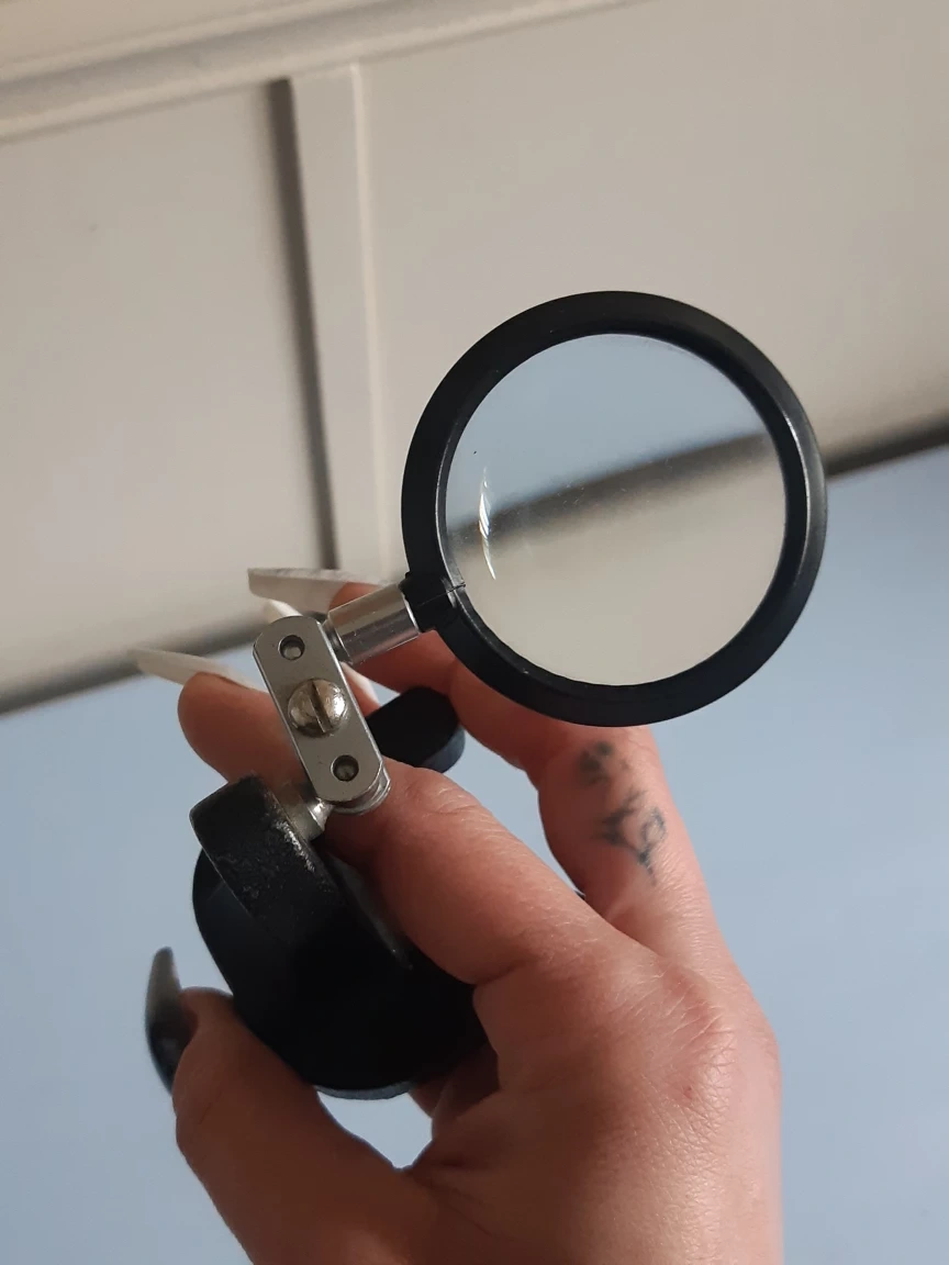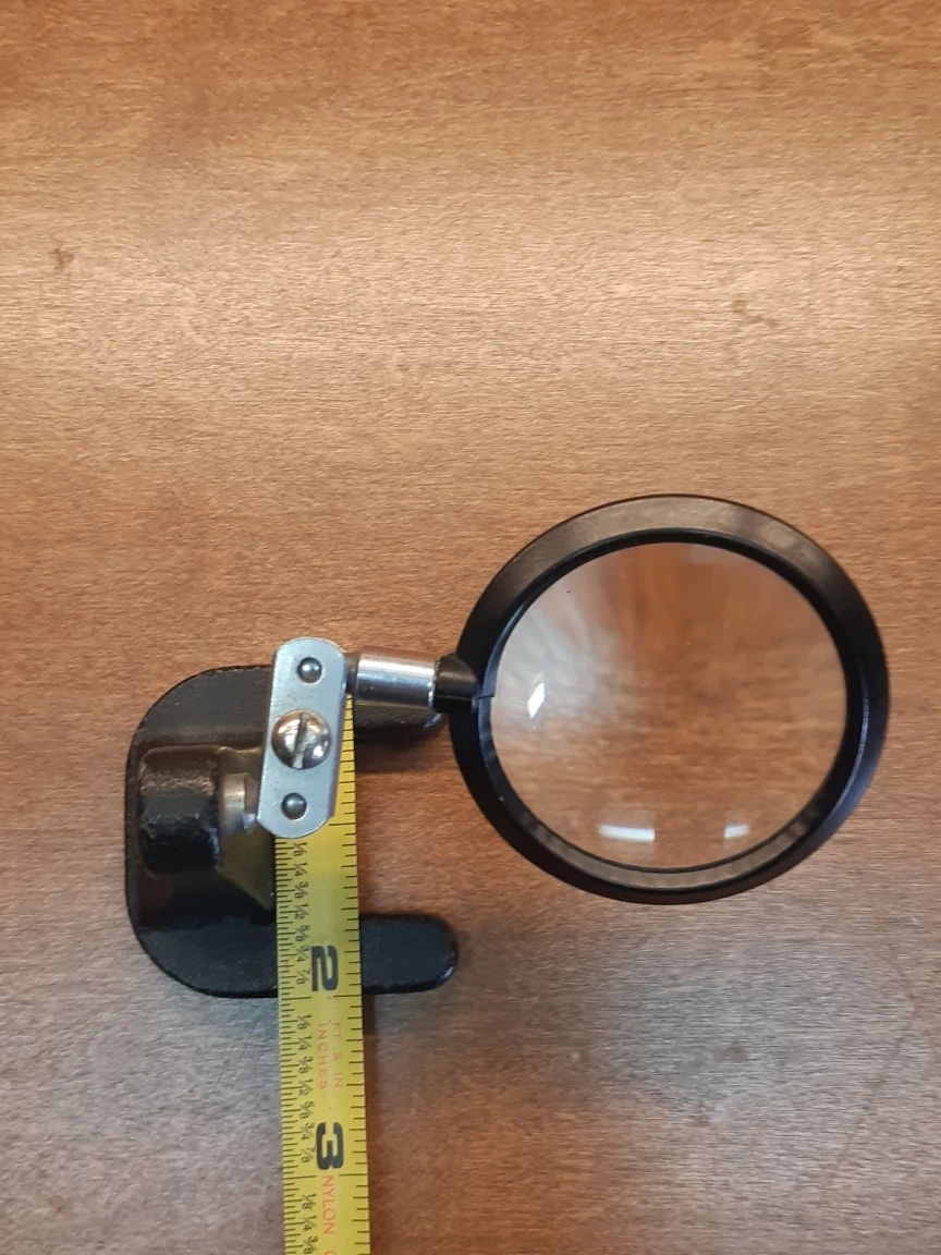 vintage magnifying glass with cast iron base