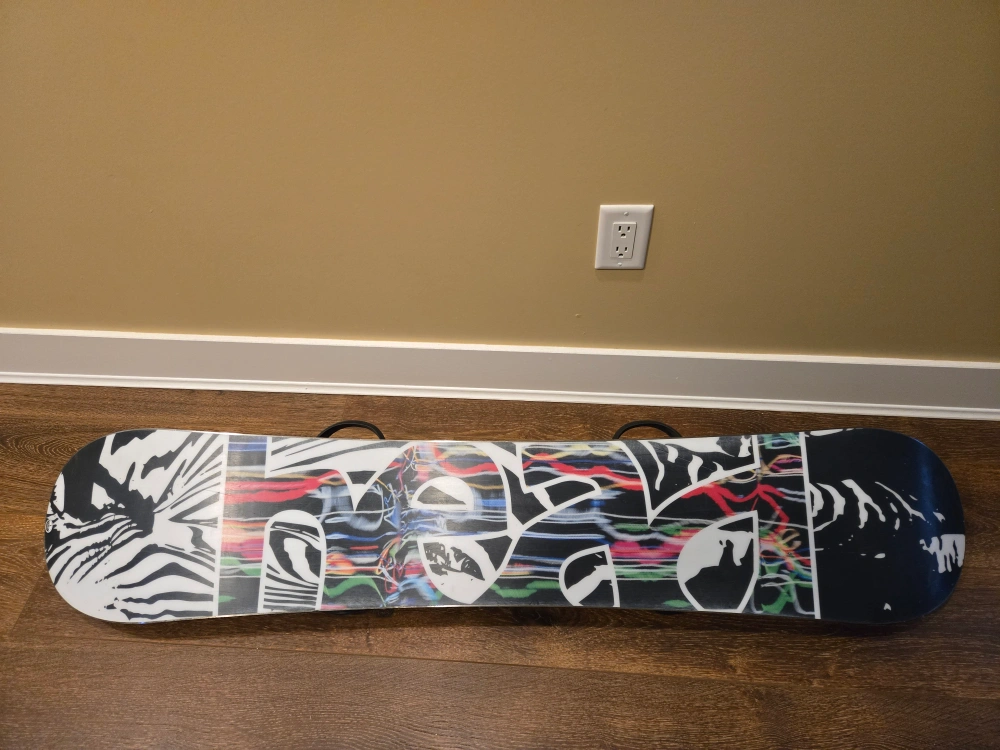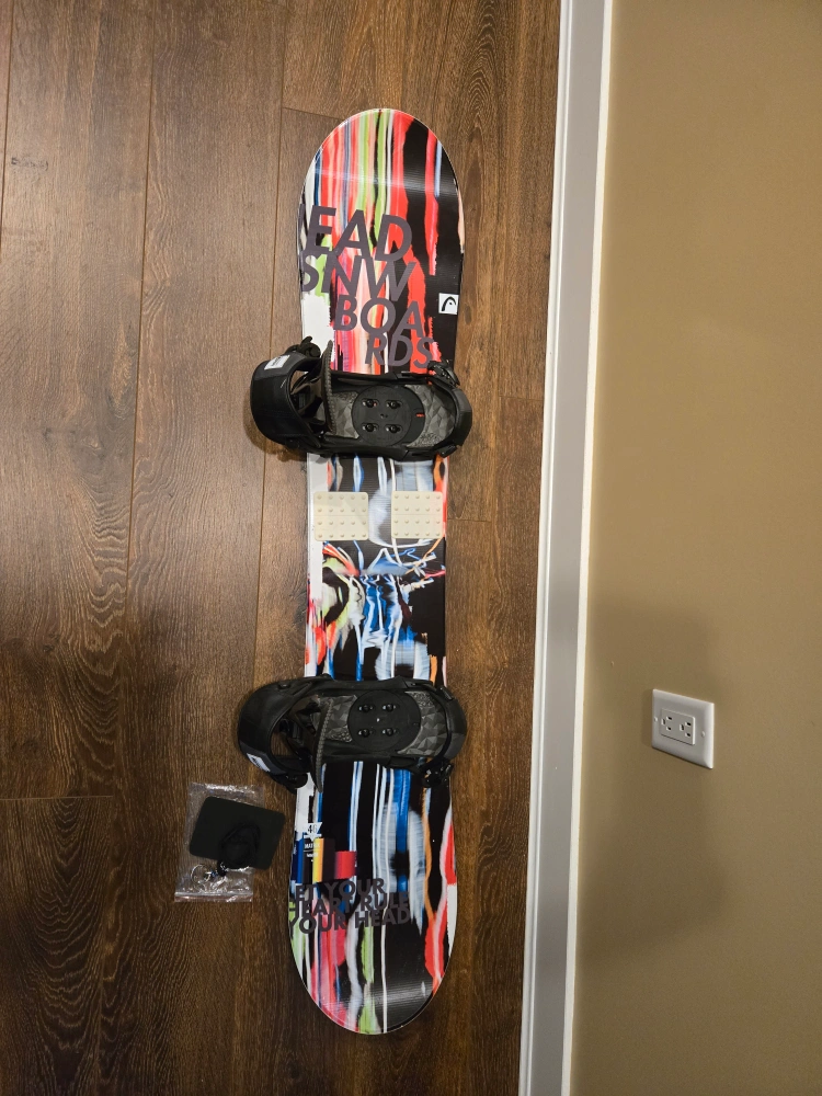 222Head Matrix 46 snowboard, includes bindings. Excellent condition. Colourful graphic. Comes with an extra stomp pad. I bought it new and used it a few times. Switched to skiing fully so it just takes space at this point. waxed and ready for riding