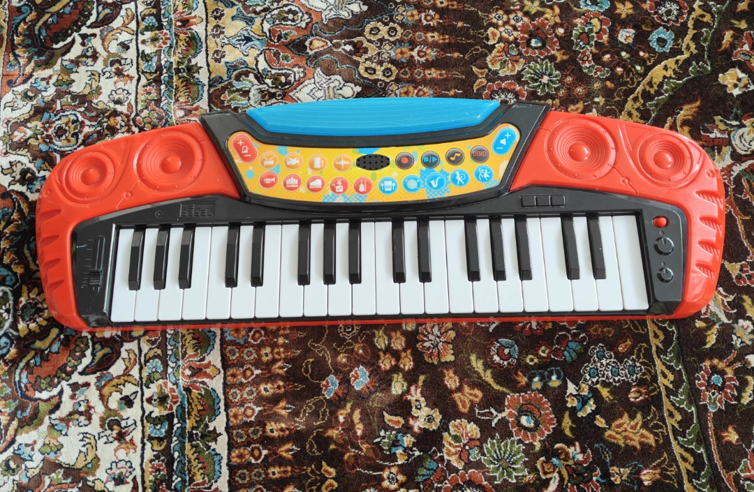 Fun toy keyboard for children. Features multiple sounds and colourful design. Great for aspiring musicians. Includes several pre-set rhythms and sounds.