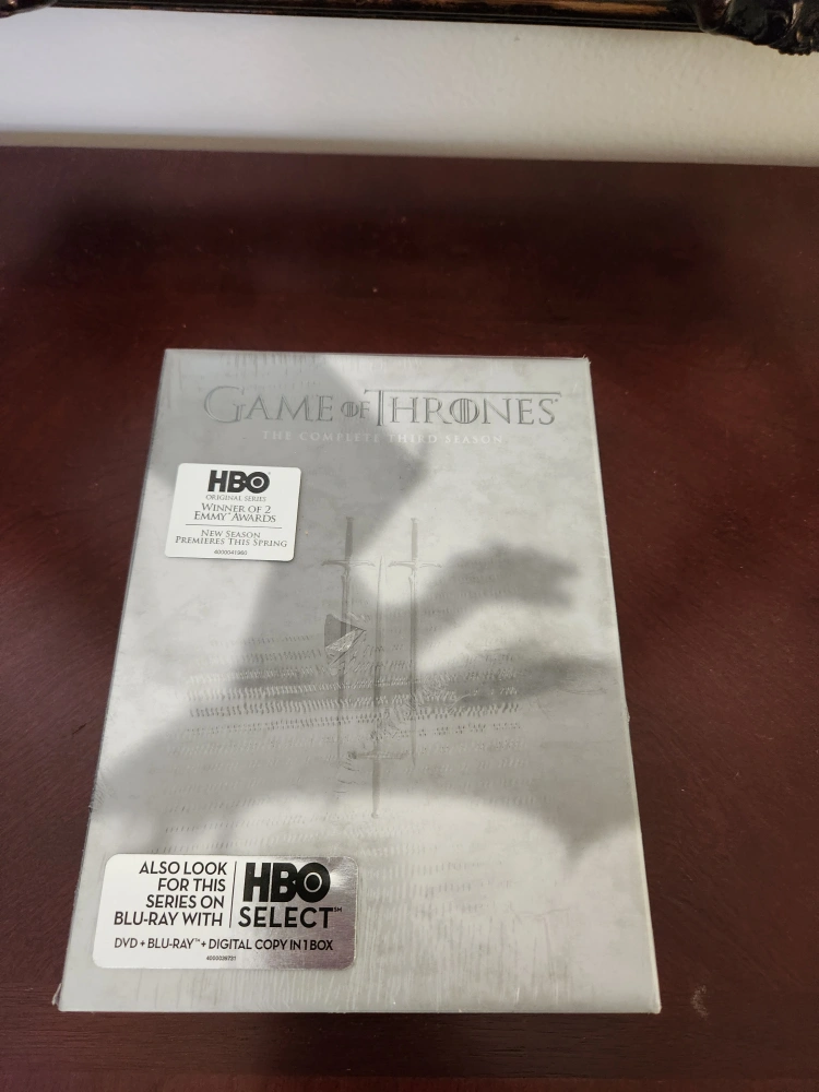 Complete third season of Game of Thrones. DVD and Blu-ray included. Digital copy also available. Winner of 2 Emmy awards.
