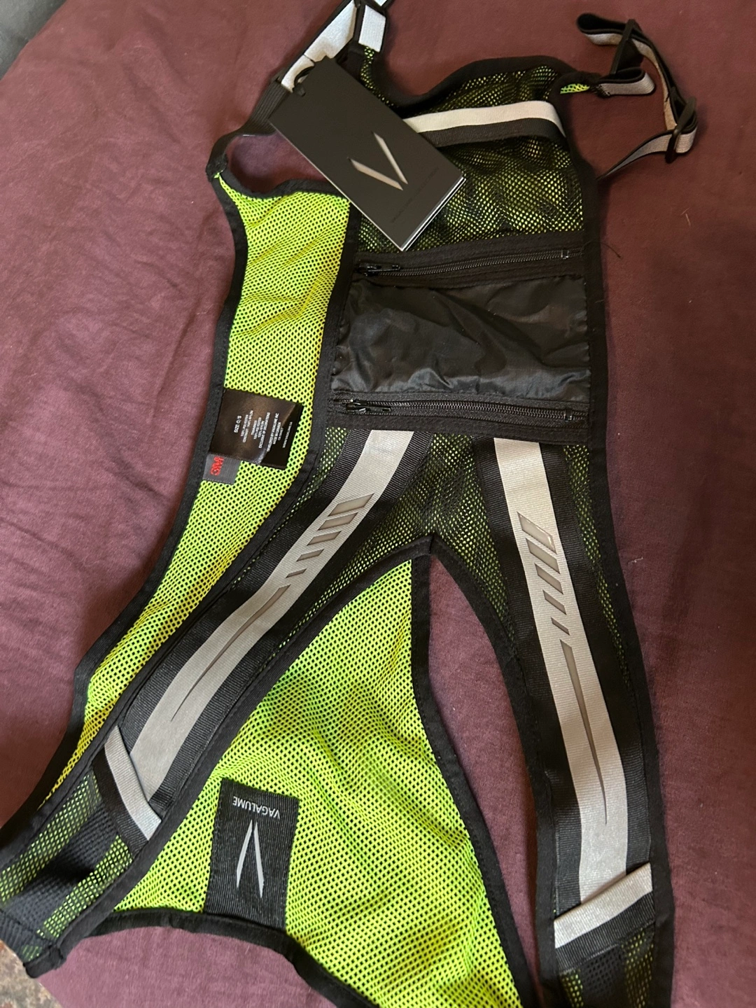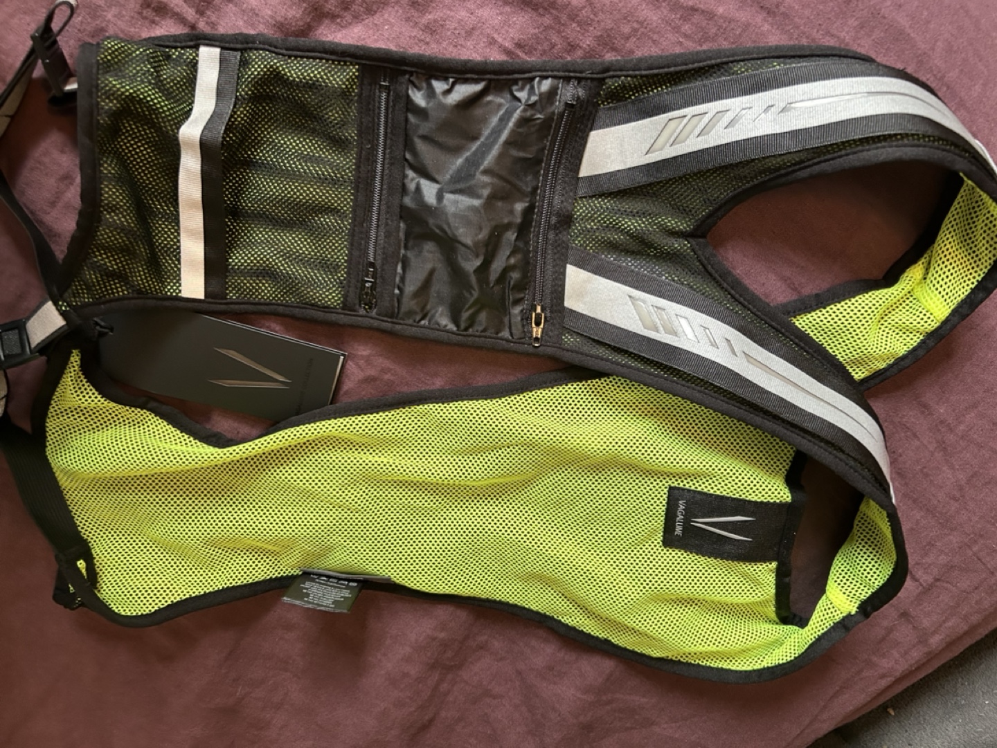 Lightweight running vest. Features reflective strips and a small zipped pocket. Mesh material for breathability. Brand new with tags. Red and lime green available.