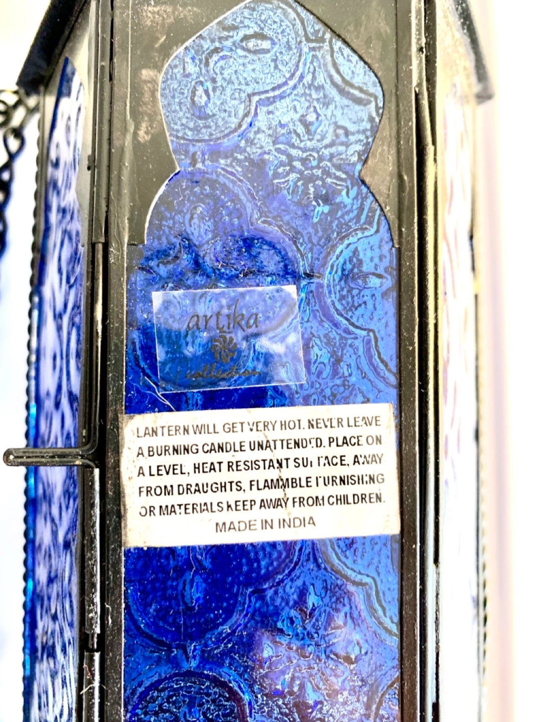 Moroccan Tealight Hanging Lanterns - Amber & Blue