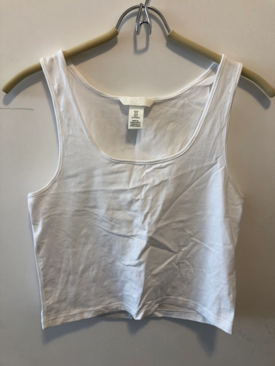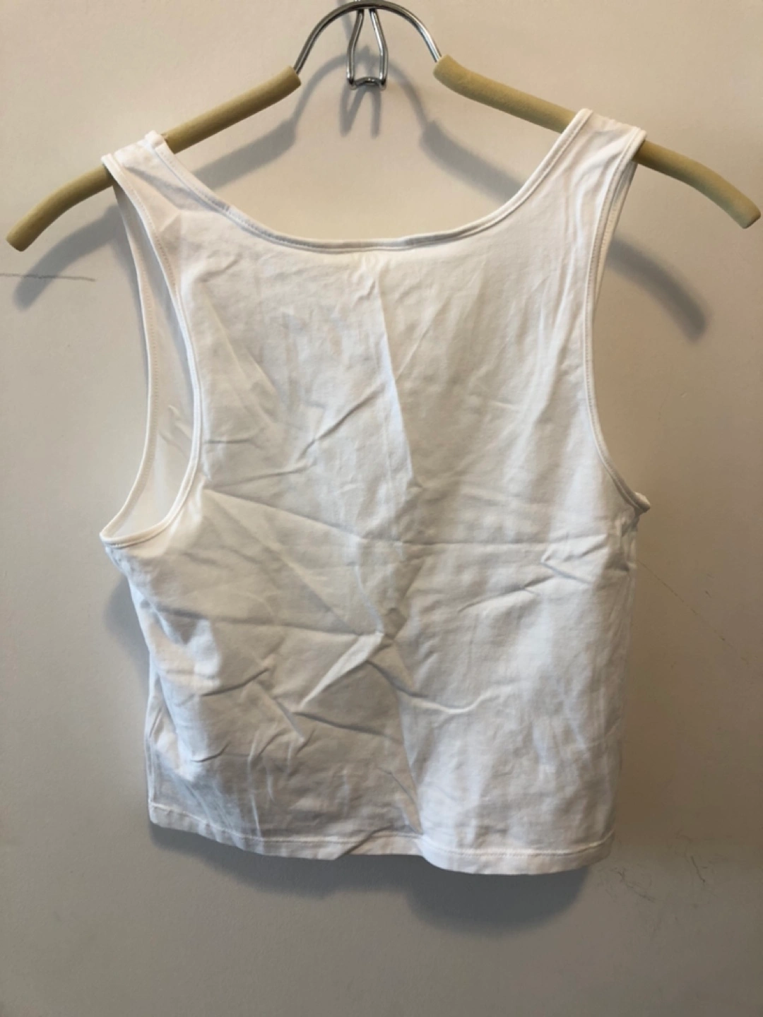 Simple white cropped tank top. Scoop neck. Size medium. Made in Bangladesh.